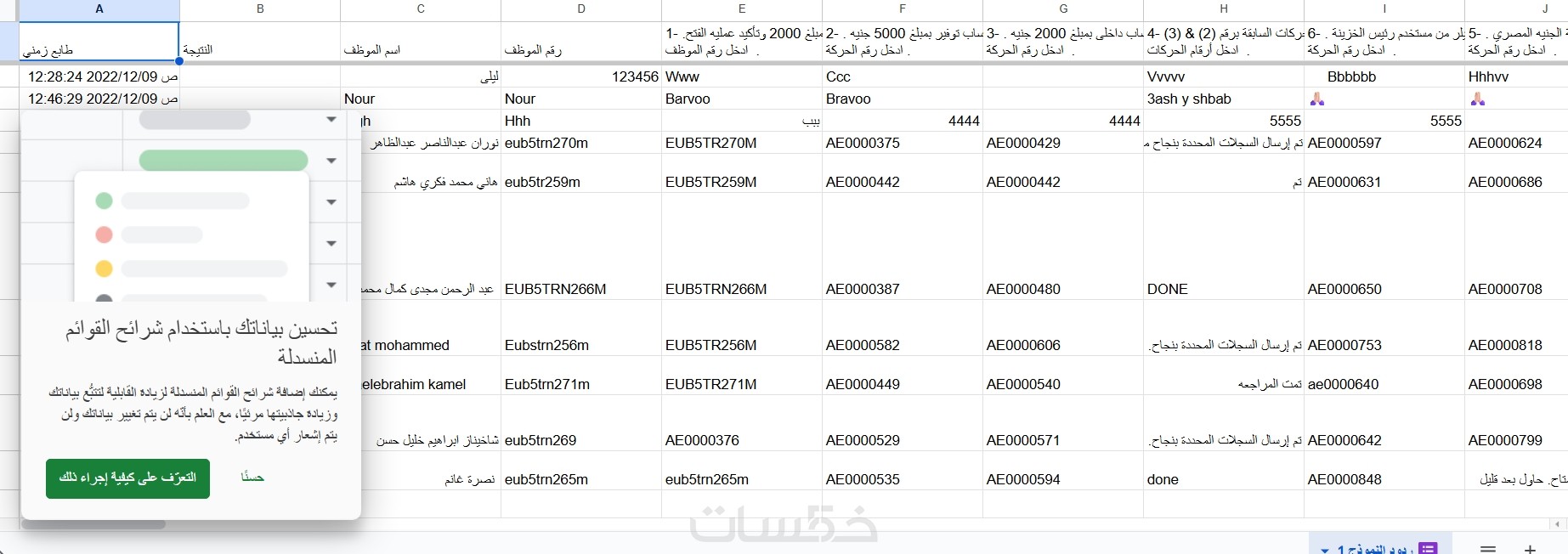 تظهر الاجابات بطريقة مرتبة ويمكن تنزيلها علي هيئة excel sheet