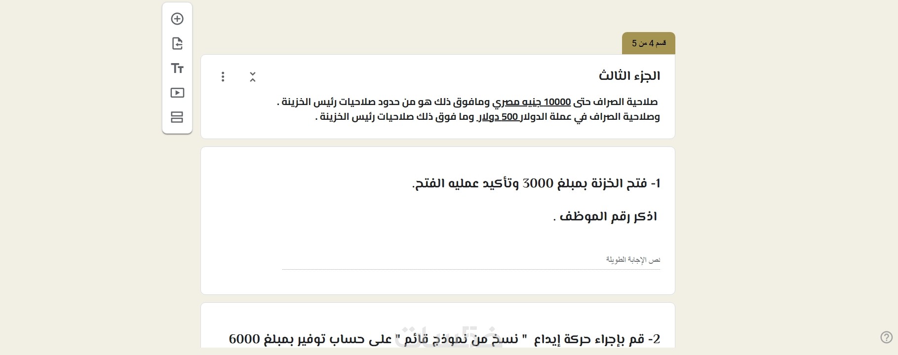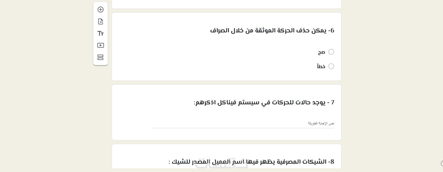 تخصيص الأسئلة (أسئلة اختيار من متعدد، صح/خطأ، أسئلة نصية، أسئلة بنقاط تقييم، وغيرها) وتنظيمها في اقسام