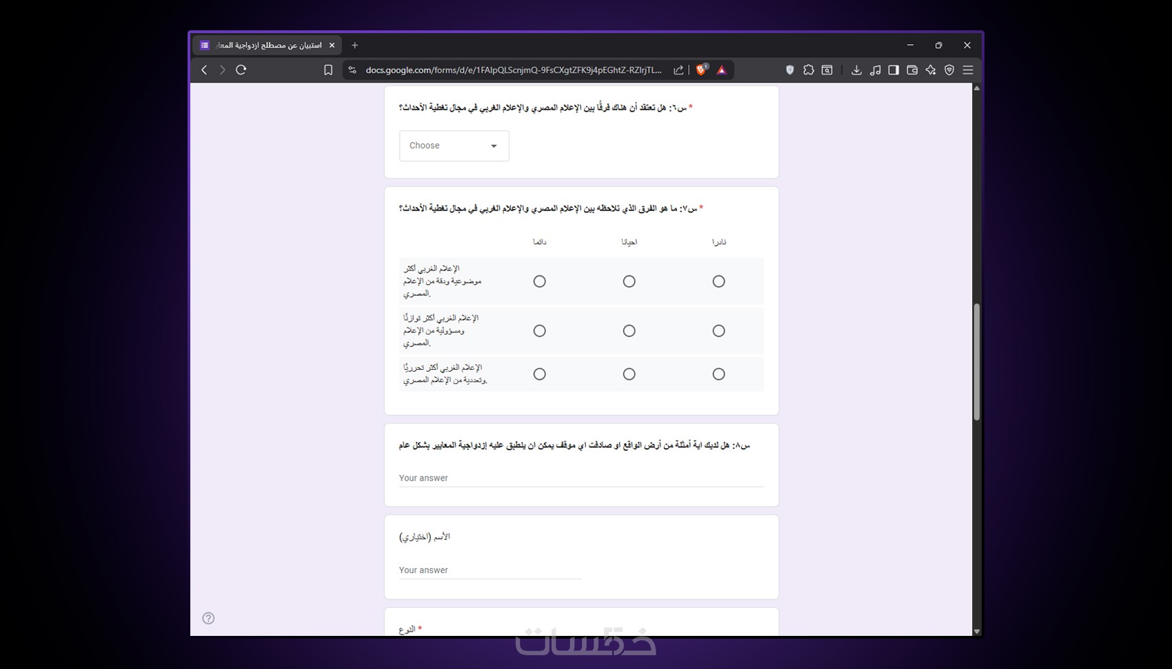 ⇱ استمارة استبيان مصممة عبر Google Forms أو Microsoft Forms حتى 15 أسئلة