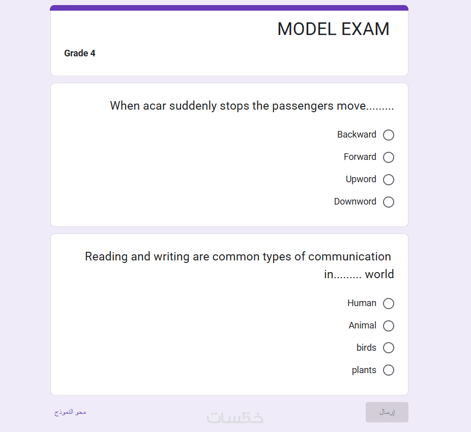 استبيان أو امتحان مصمم حسب الهدف المطلوب