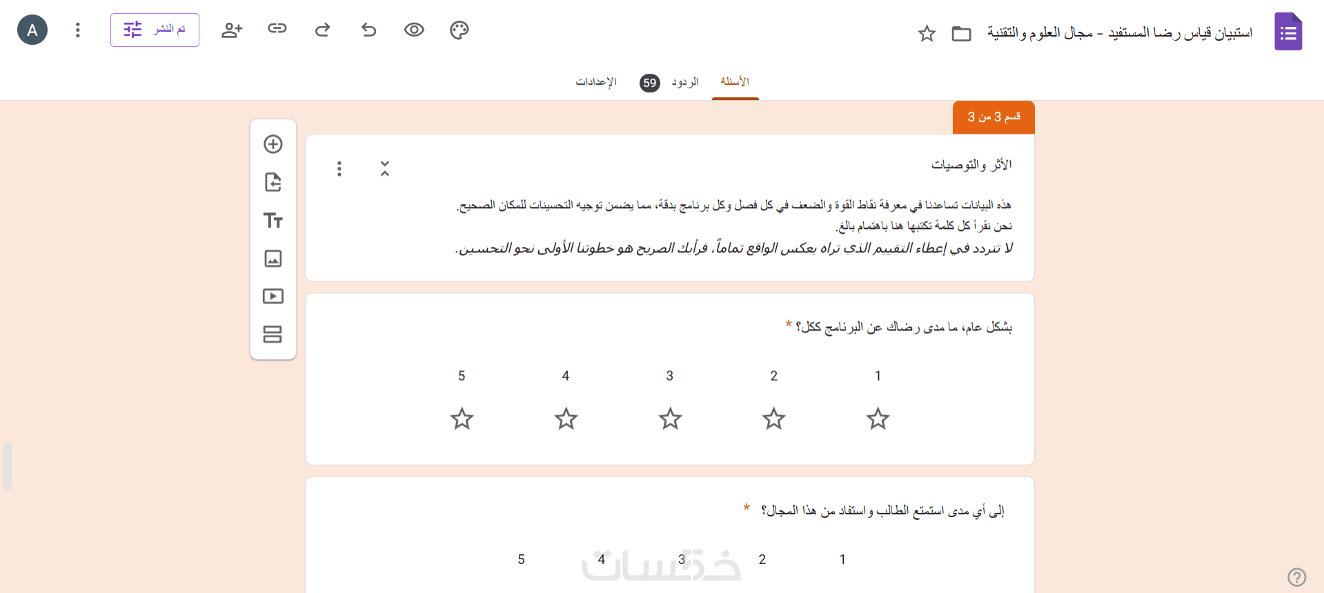 تصميم نموذج اكثر من 20 سؤال (بحد اقصي 50 سؤال)