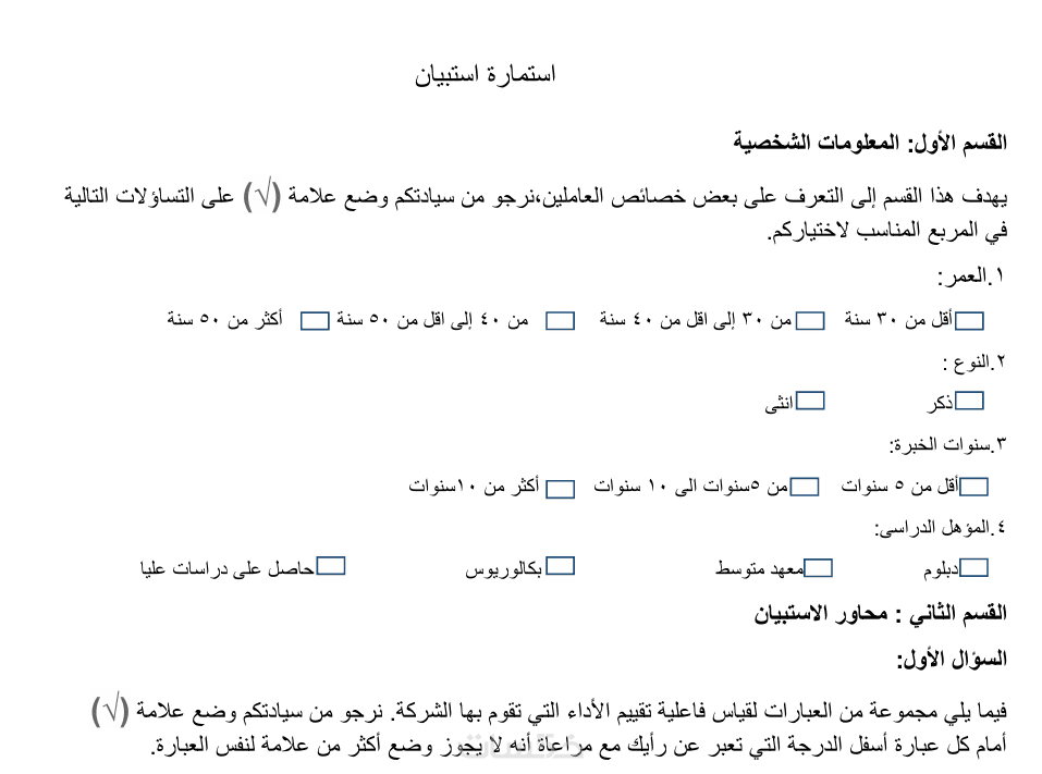 1- تعبئة استبيان لعينة تتكون من 100 فردية .