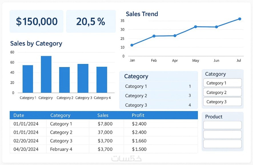 إضافة فلاتر (Slicers) لتصفح البيانات بشكل ديناميكي.