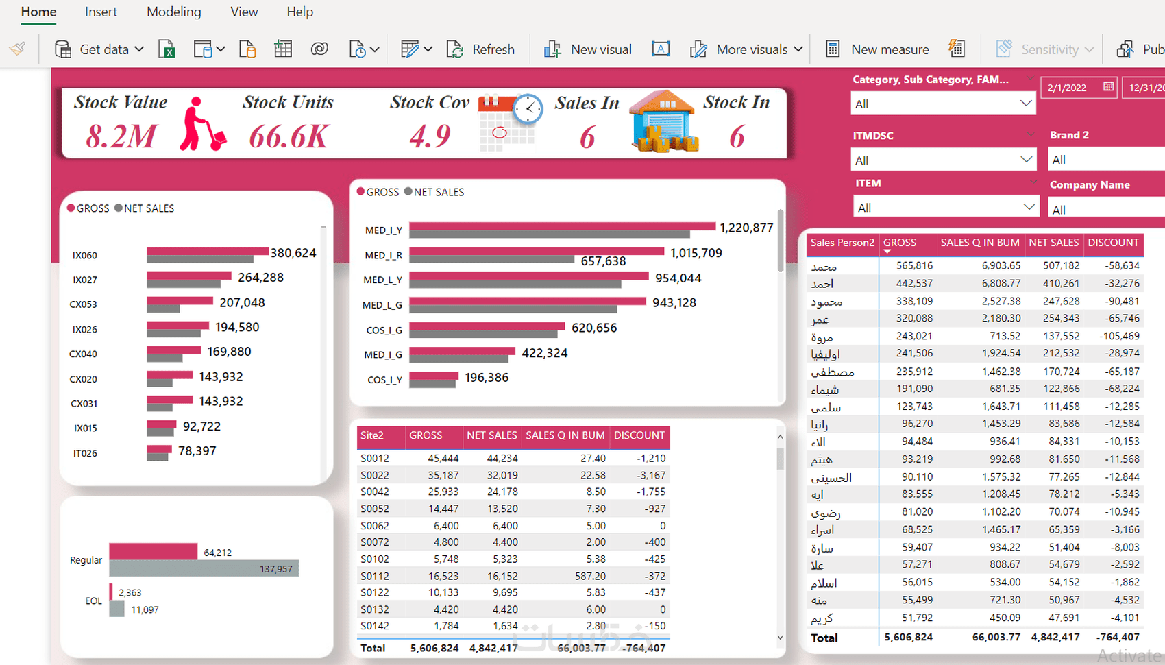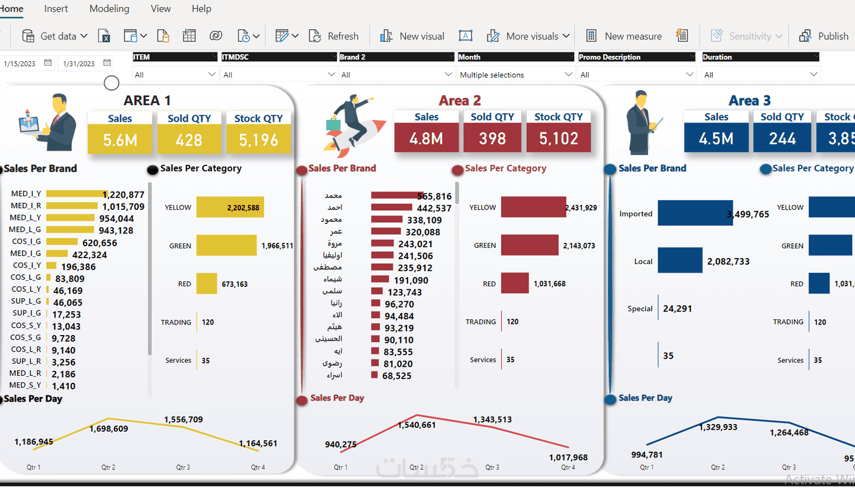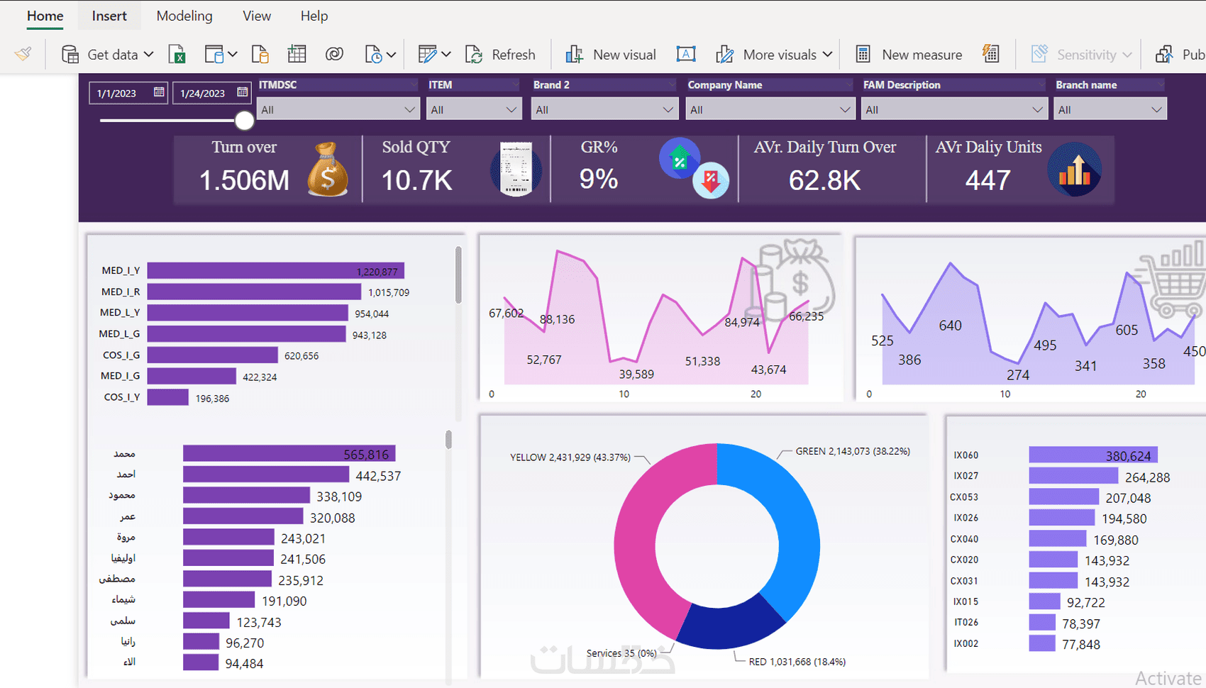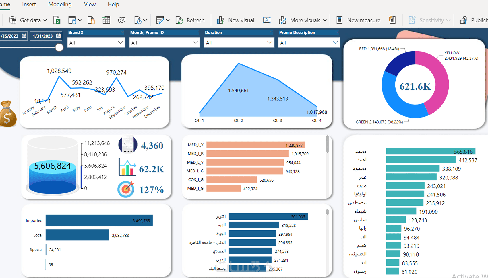 -إنشاء تقارير في صفحة واحدة يشمل 6 رسومات بيانية تفاعليه للمبيعات او نتائج او تحقيق اهداف .......الخ