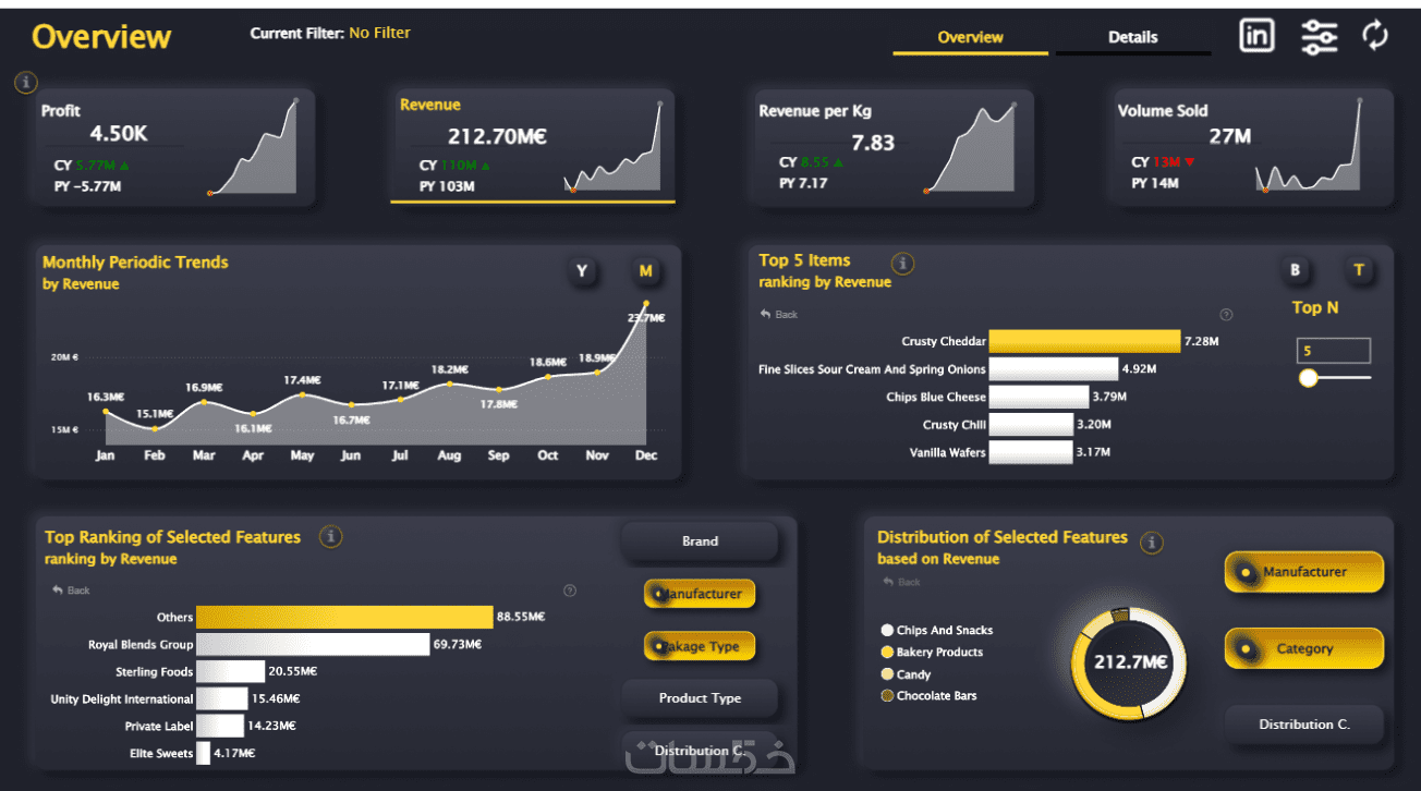تعتبر الرسوم البيانية من أسهل وأفضل وسائل تحليل البيانات لذا من خلال هذه الخدمة سوف تتمكن من قراءة بياناتك من خلال داشبورد تفاعلي يعمل ببرنامج الاكسيل ونضمن لك :