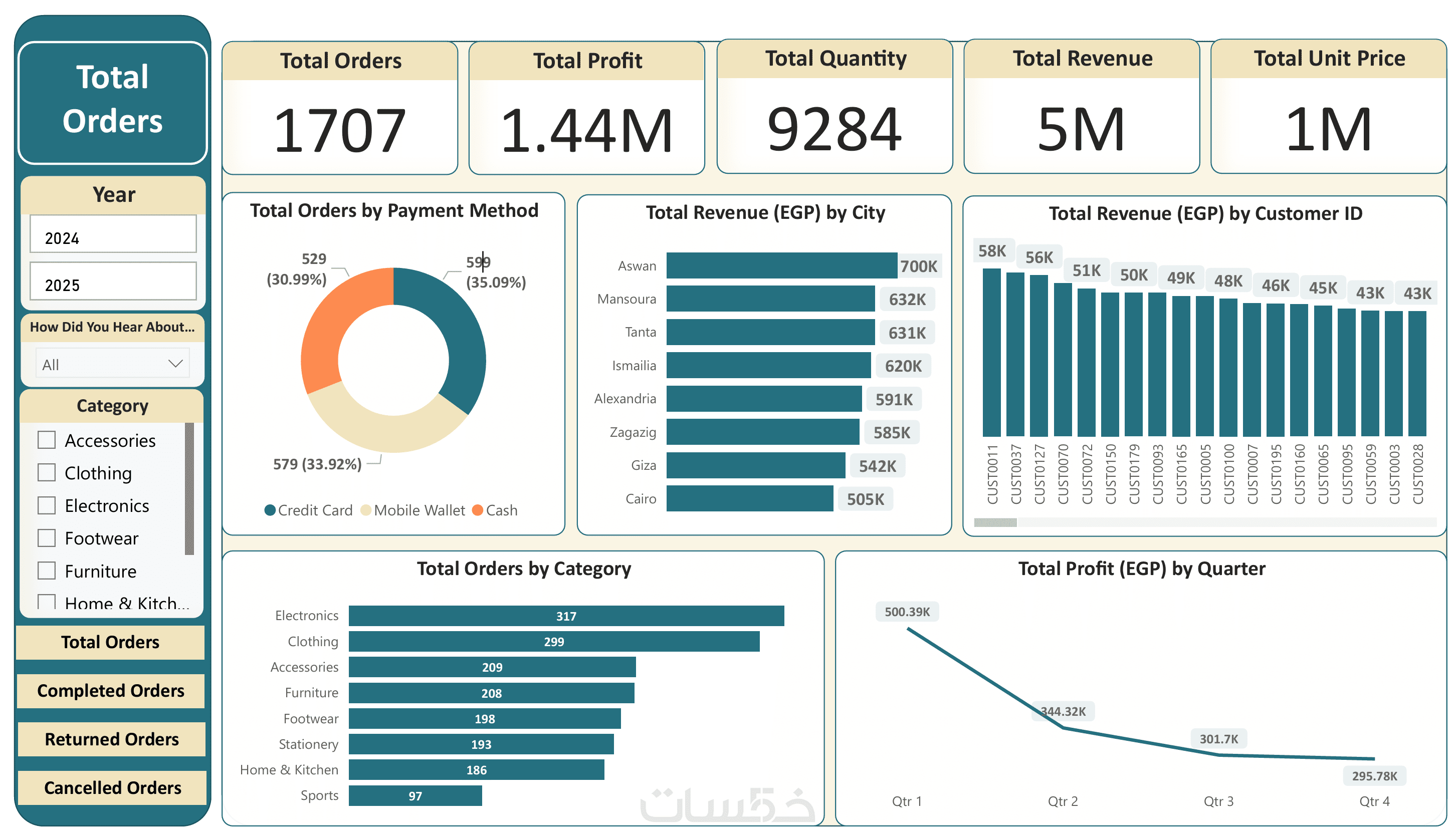 يحصل المشتري على مثل هذه اللوحات بطريقة جذابة حيث يمكن اضافة خيار الفلترة أيضاً (Slicer) ليتمكن العميل من الاستفادة القصوى من هذه الخدمة.
