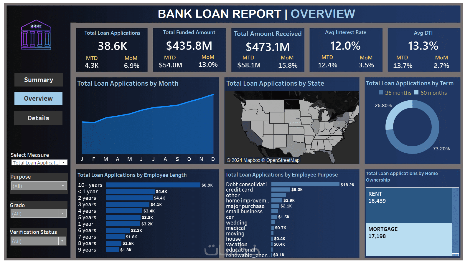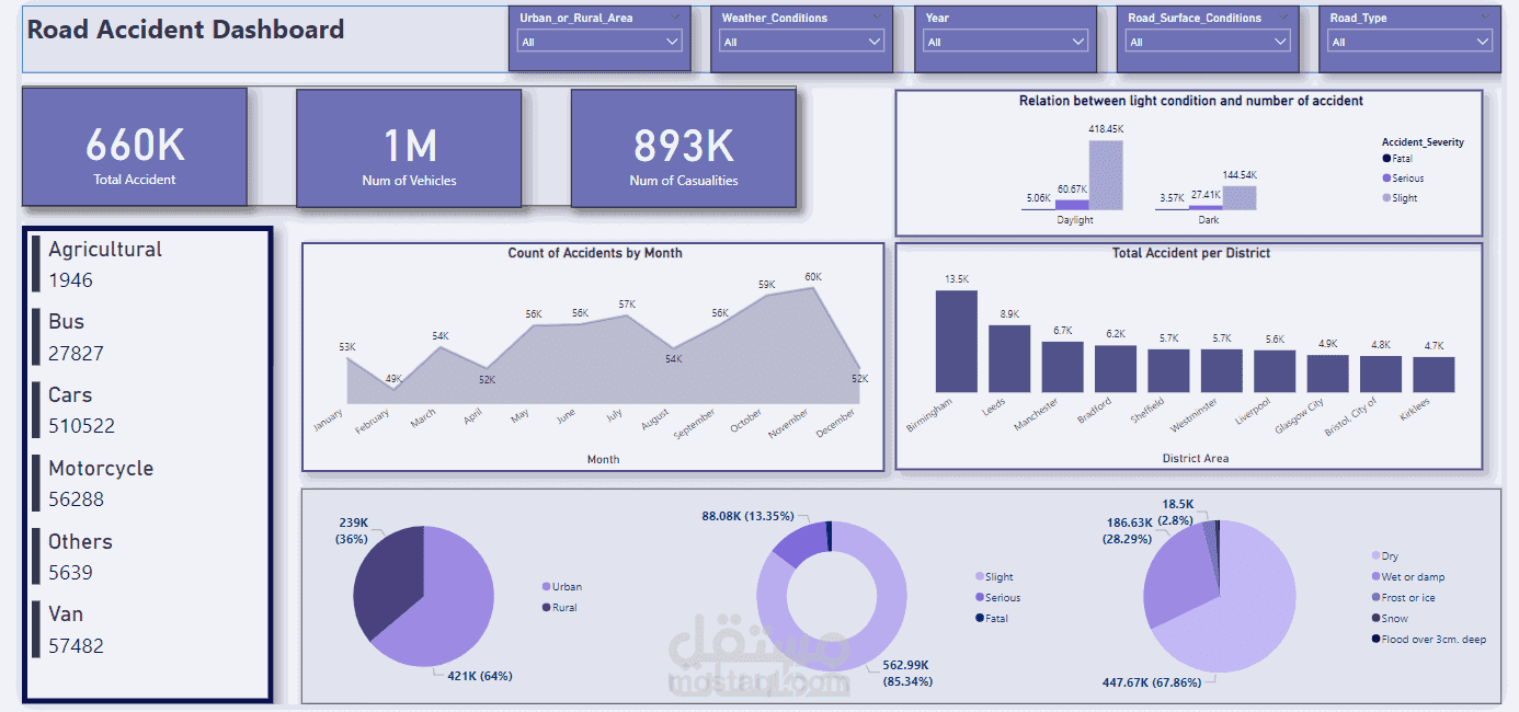 - تصميم لوحة تحكم تفاعلية تحتوي علي خمس رسومات و اهم ال Kpis