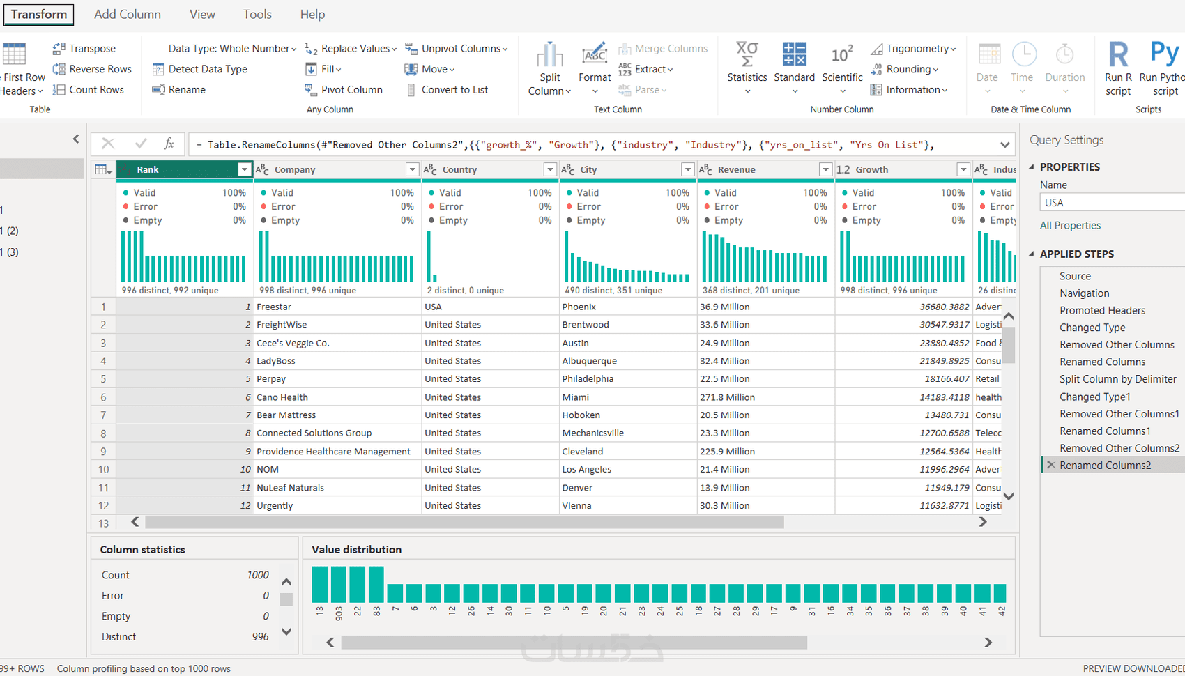 تحليل جدول بيانات 1000 صف