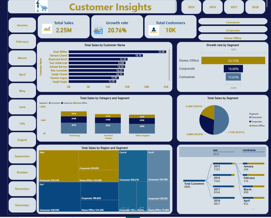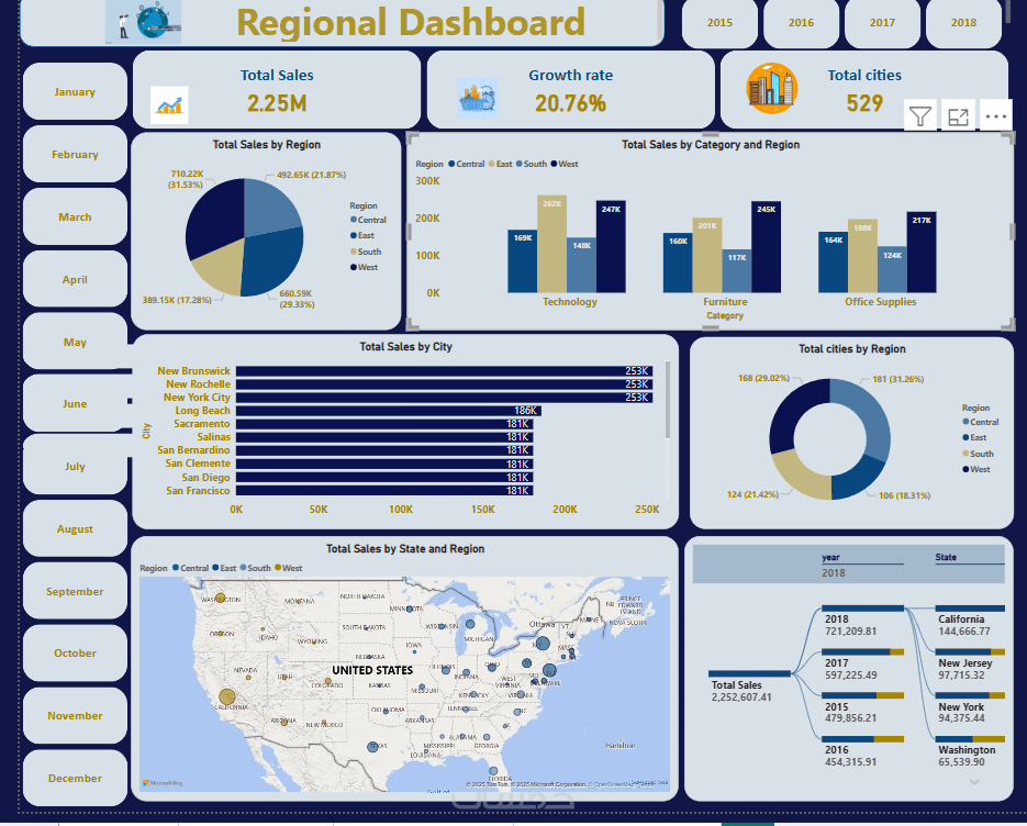 • تصميم لوحة تفاعلية (Dashboard) مكونة من أربع مرئيات(Visuals) بالإضافة إلى أربع كروت(Cards) متضمنة أهم المقاييس(Metrics)