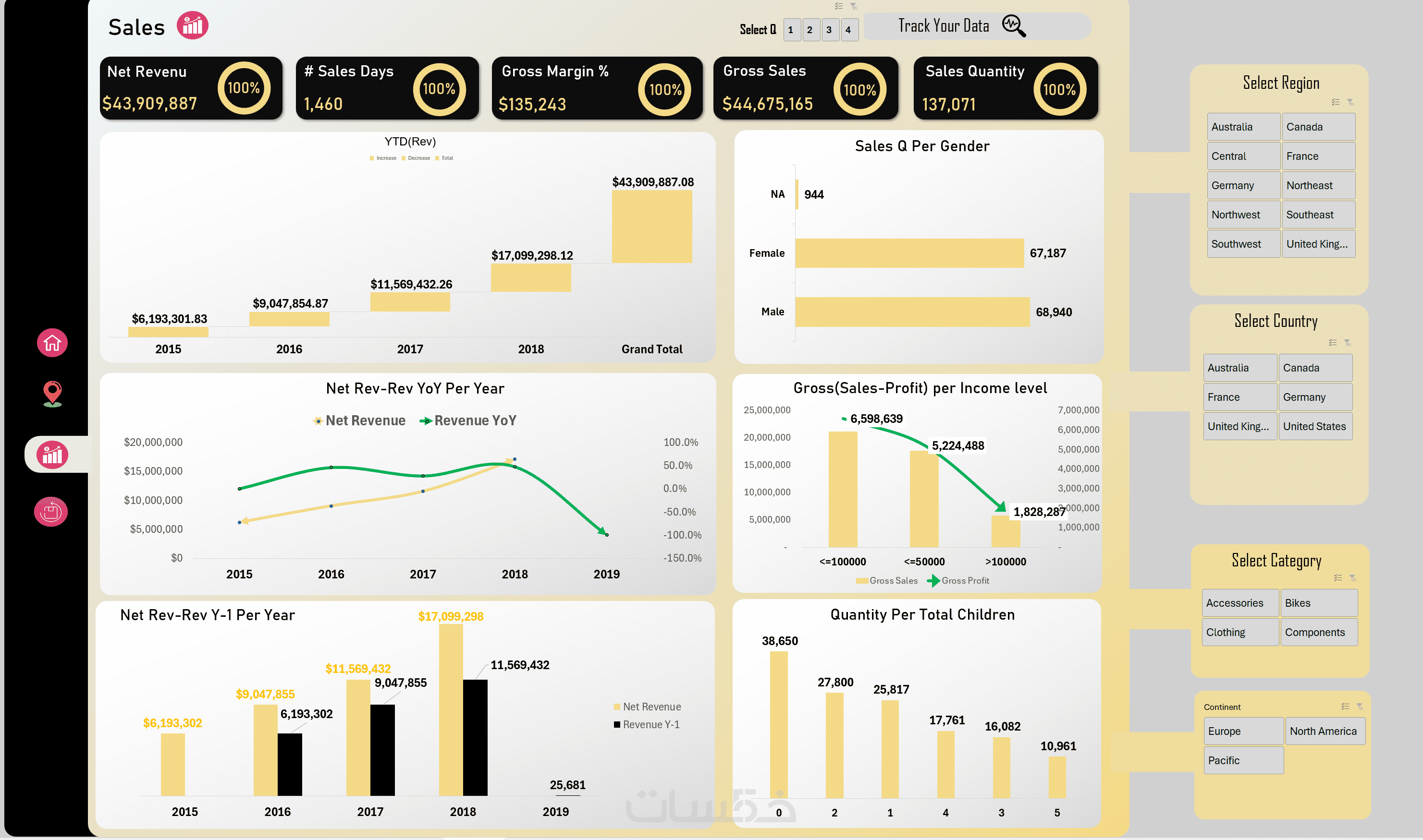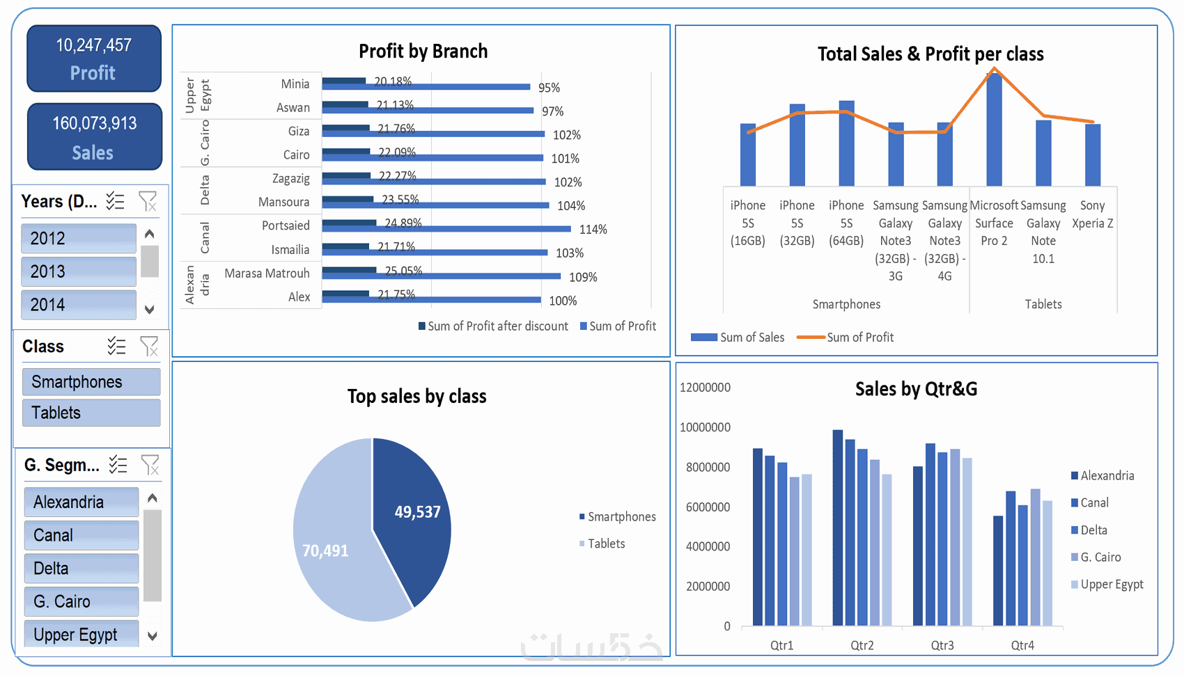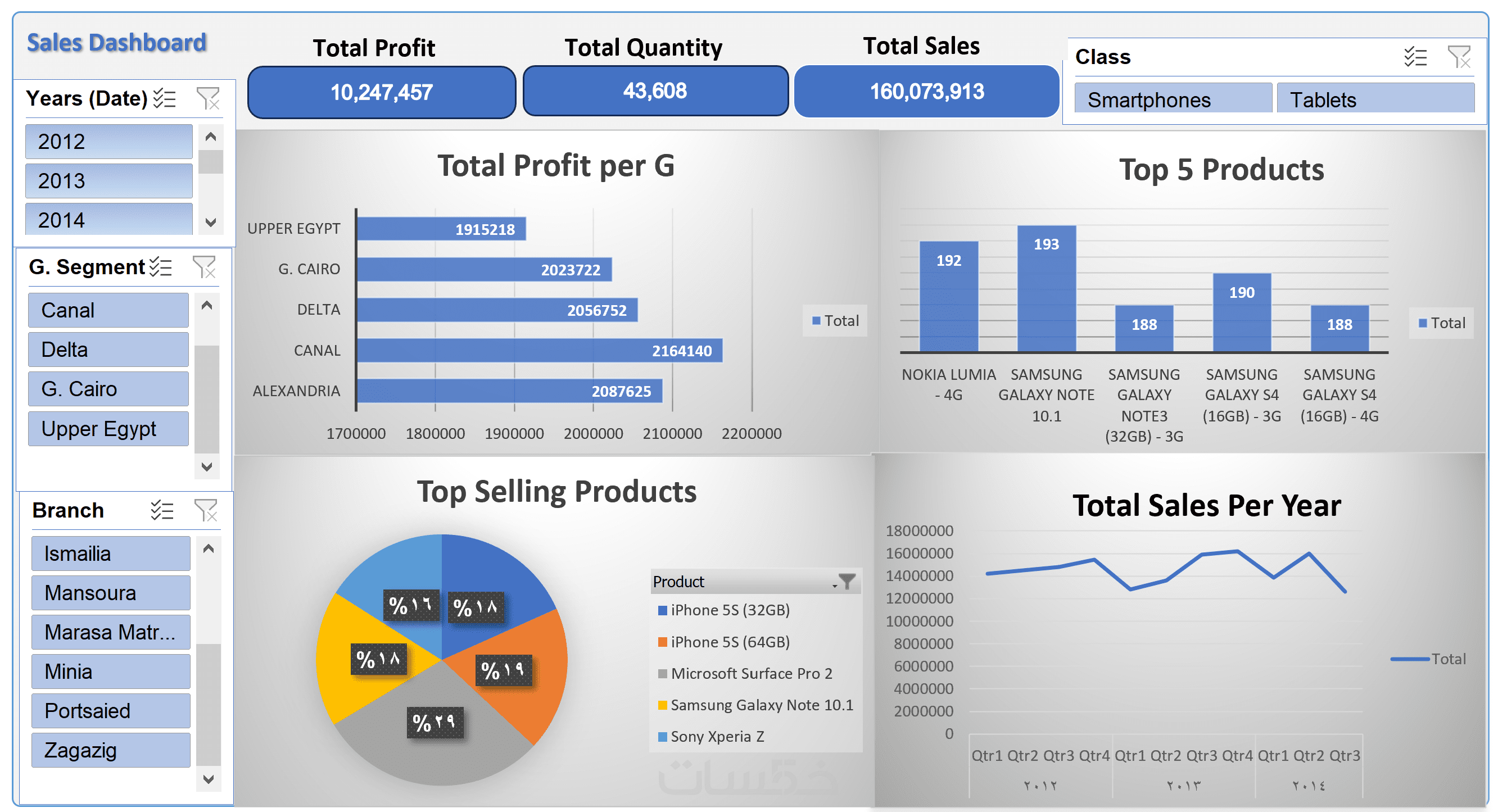- الداشبورد يحتوي خمس مخططات (Charts 5-6) مع Slicers