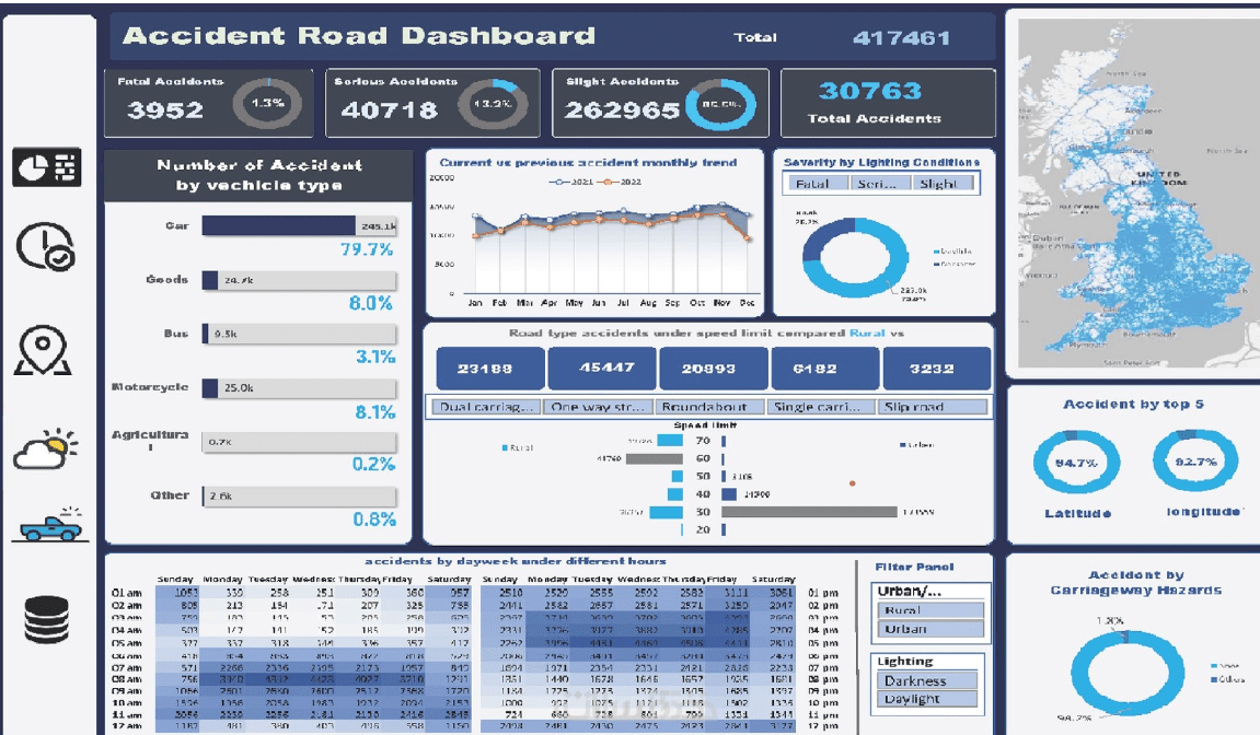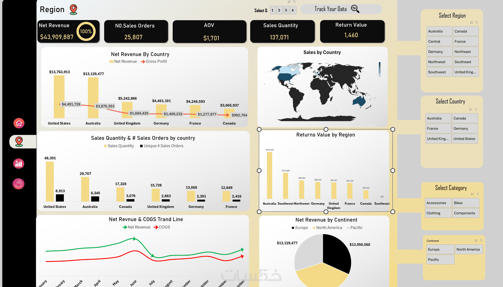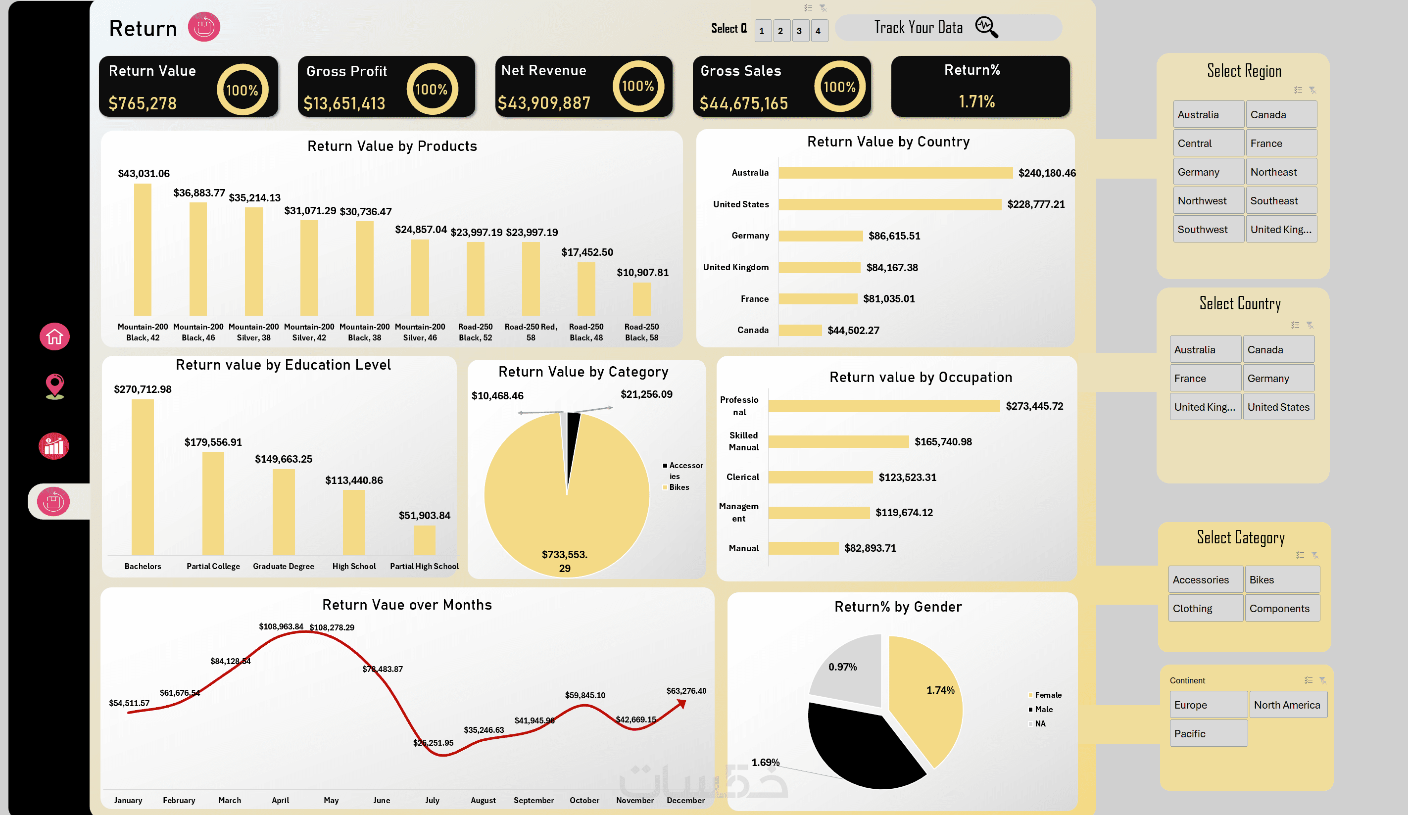 - الداشبورد يحتوي خمس مخططات (Charts 5-6) مع Slicers