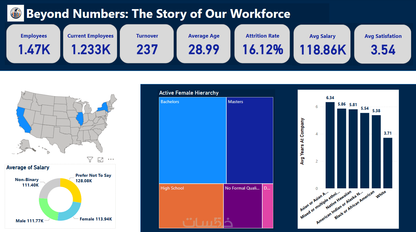 => تقرير Power BI مكوّن من صفحة واحدة يعكس أهم المؤشرات المطلوبة.