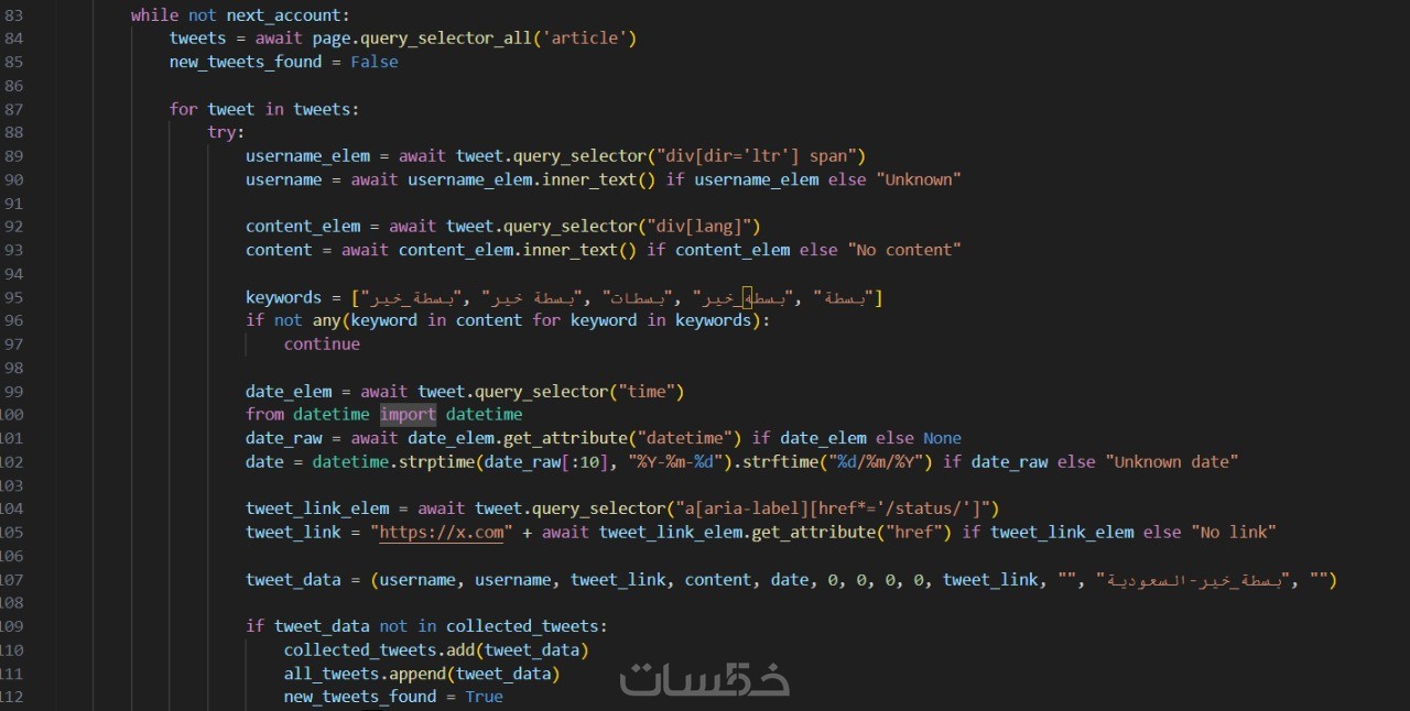 كود Python المستخدم (عند الحاجة) في استخراج أو تحليل البيانات.