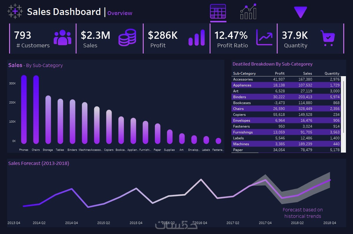 داشبورد 5 رسوم بيانية تفاعلية
