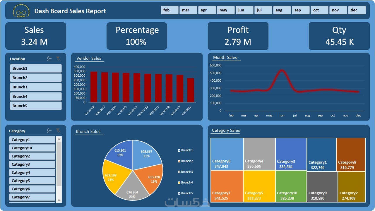 تقرير للمبيعات بسيط وسهل القراءة والتفاعل
