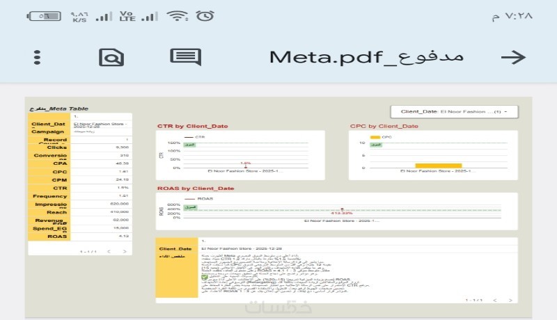 أقدّم خدمة تحليل احترافي لتقارير الحملات الإعلانية على منصات ميتا (فيسبوك وإنستجرام)، جوجل، تيك توك، لينكدإن وتويتر، بالإضافة إلى تحليل أداء الصفحات المجانية على فيسبوك وبيانات GA4 و CRM.