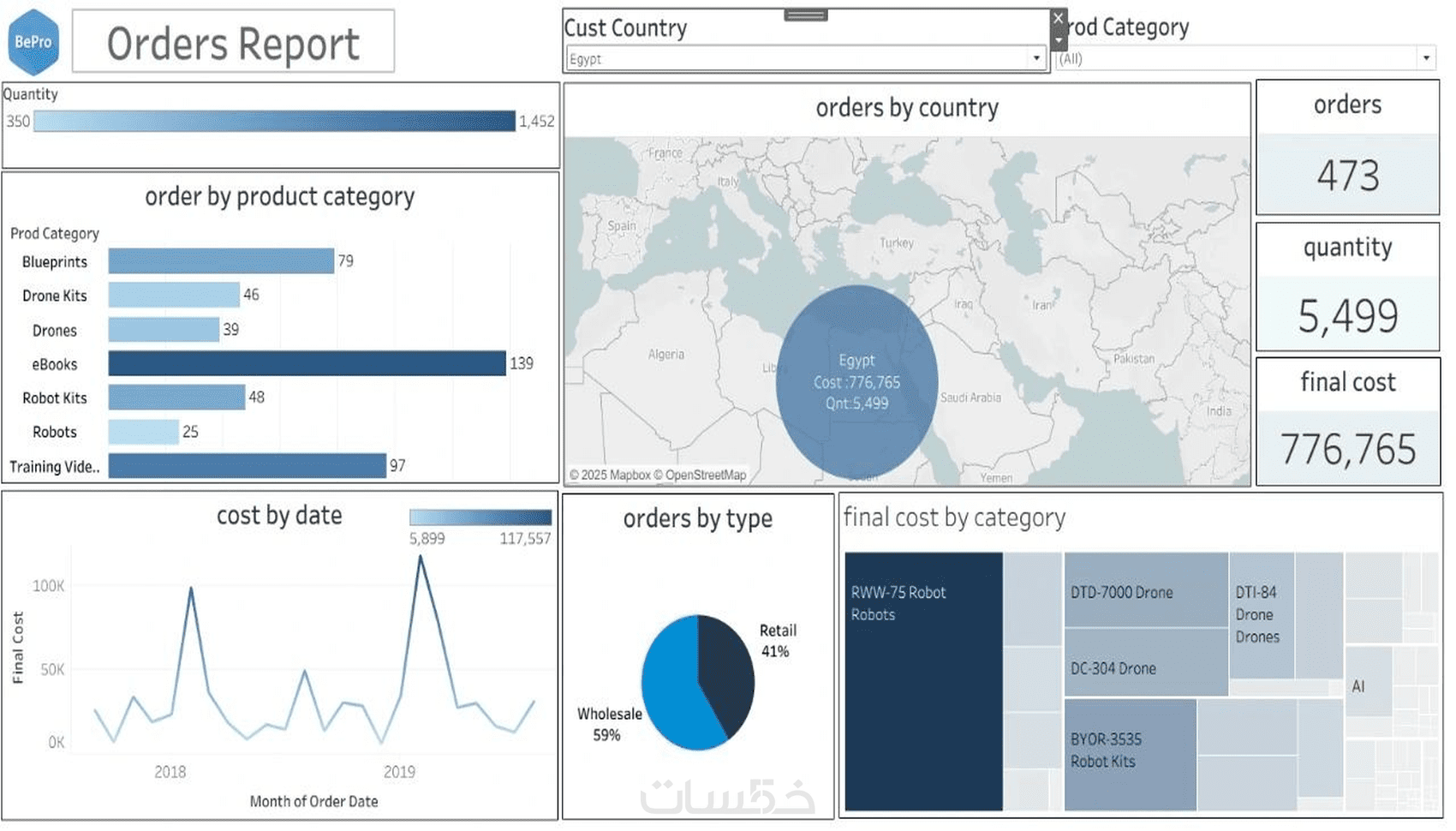 ملف Dashboard جاهز (Tableau أو Power BI حسب الاتفاق)