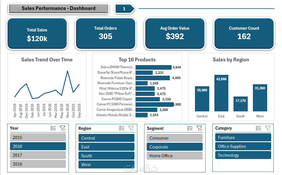 صفحات منظمة + فلاتر وسلايسر + Drill-through حسب الحاجة.