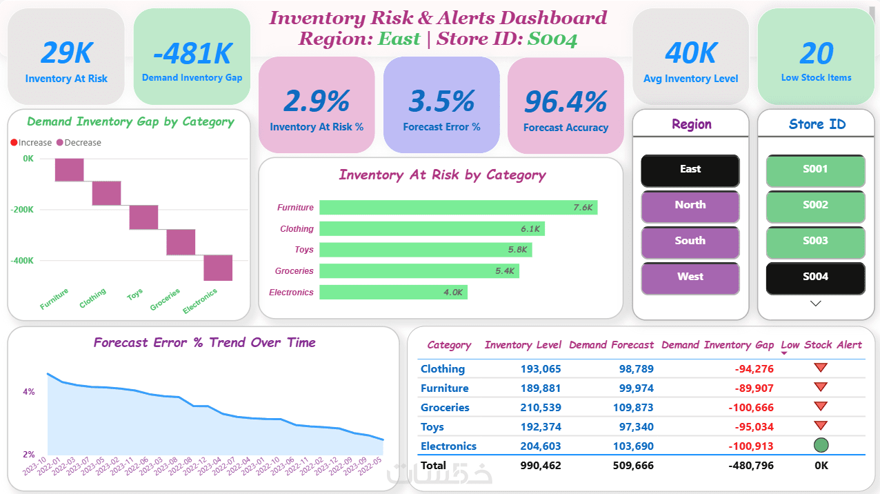 ملف Power BI أو Excel + نسخة PDF/صور للعرض + شرح سريع للاستخدام.
