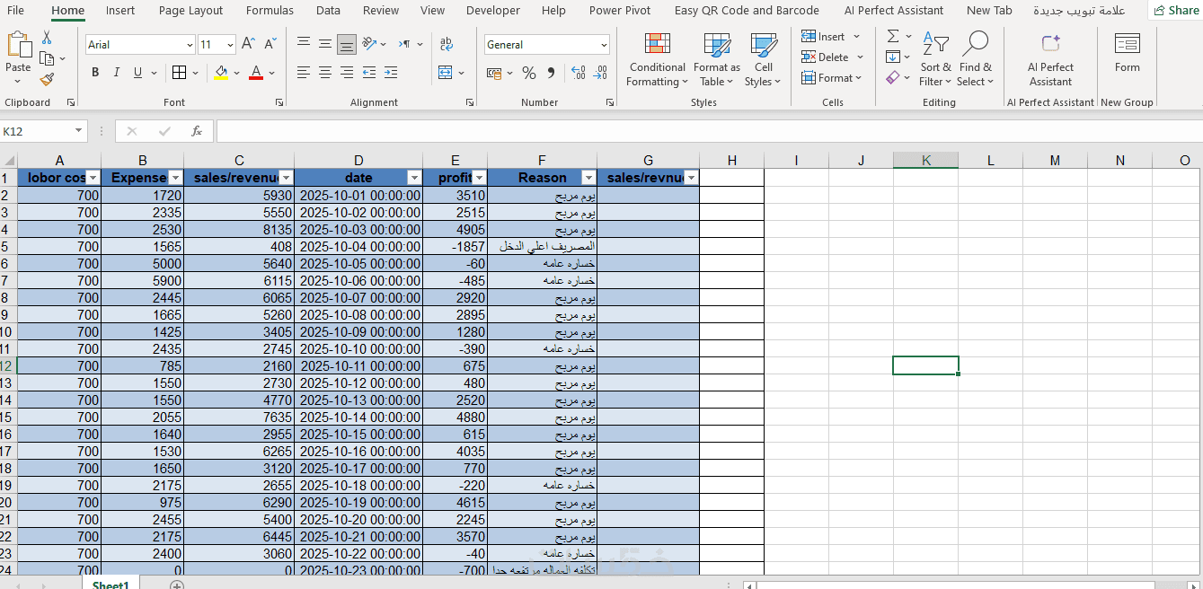 ملف البيانات بعد أن قمت بتنظيفه وترتيبه باستخدام Python أو SQL.