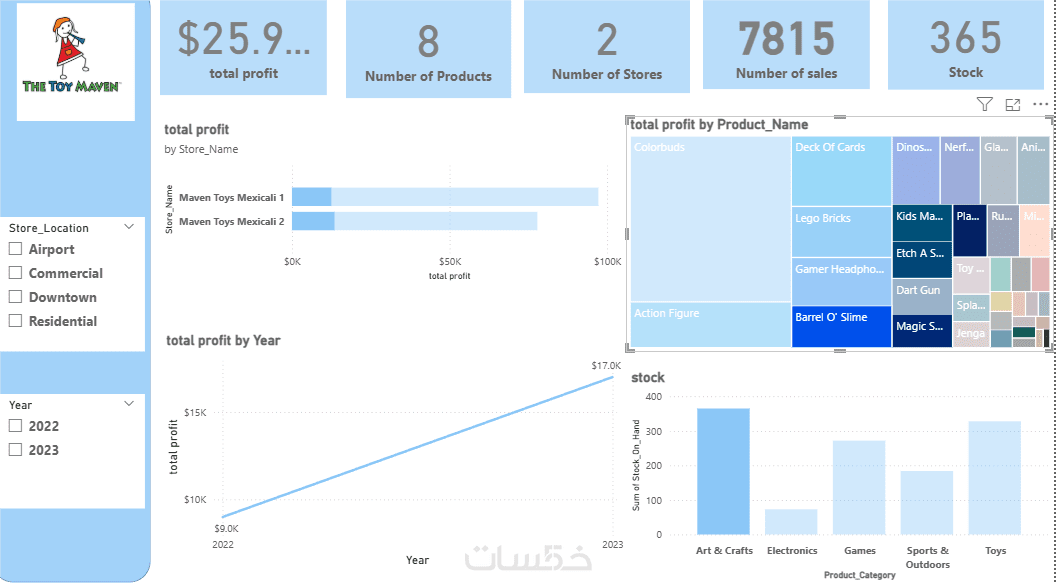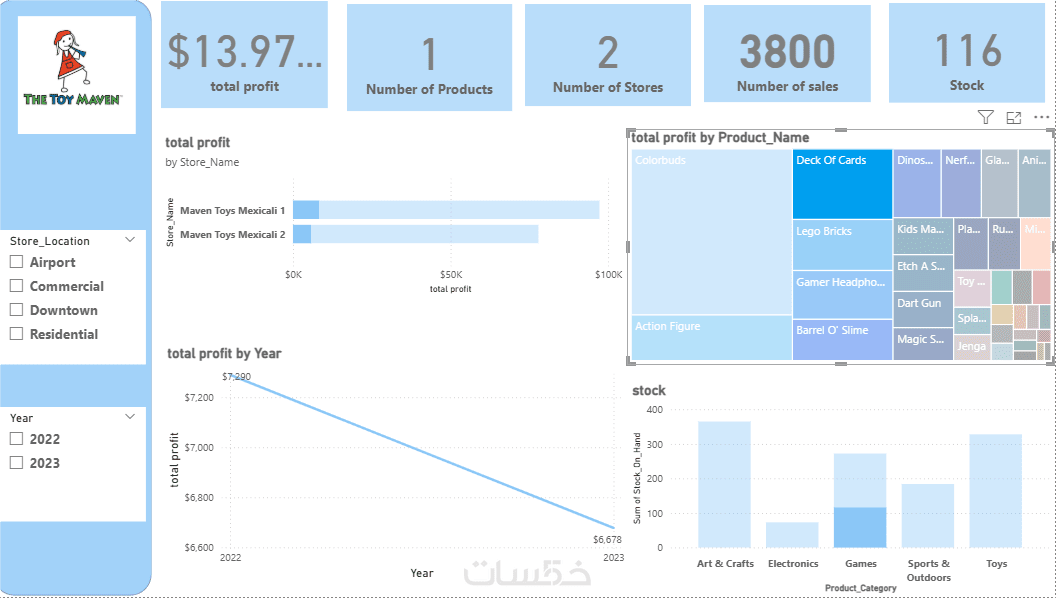 أقوم بتصميم Dashboard منظم يعرض مؤشرات الأداء الرئيسية باستخدام رسوم بيانية تفاعلية وSlicers لتسهيل تحليل البيانات واتخاذ القرار.