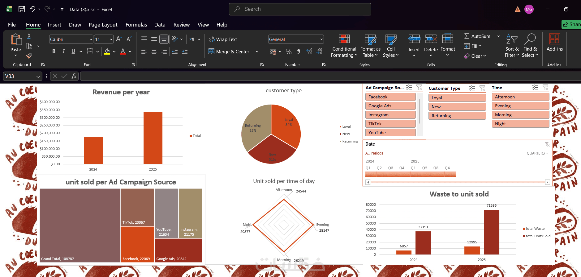 سأقوم بتصميم رسم بياني واحد (Chart) احترافي أو جدول محوري (Pivot Table) لبيانات جاهزة (حتى 200 سطر).