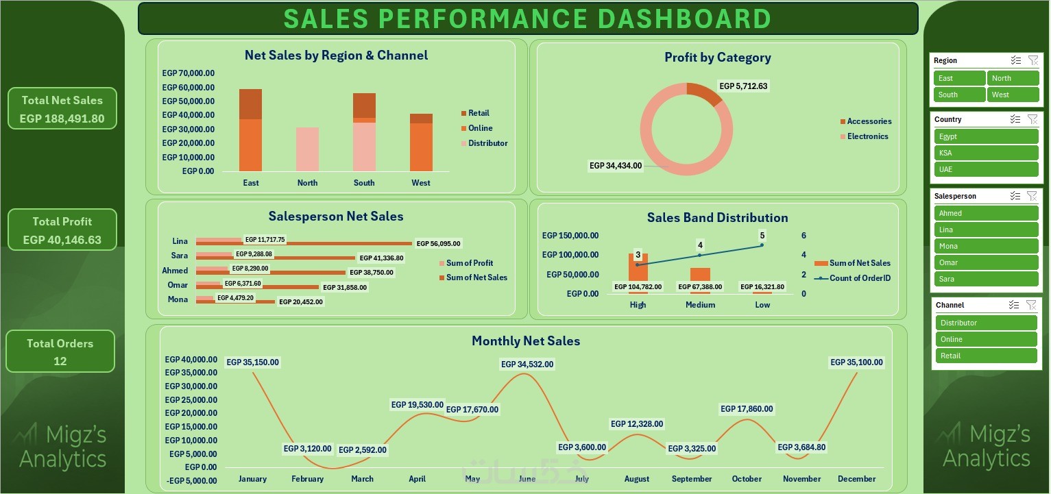 لوحة تفاعلية بـ 6 رسوم، فلاتر ذكية، و3 مؤشرات أداء (KPIs). مثالية لإدارة أعمالك الصغيرة ببساطة.