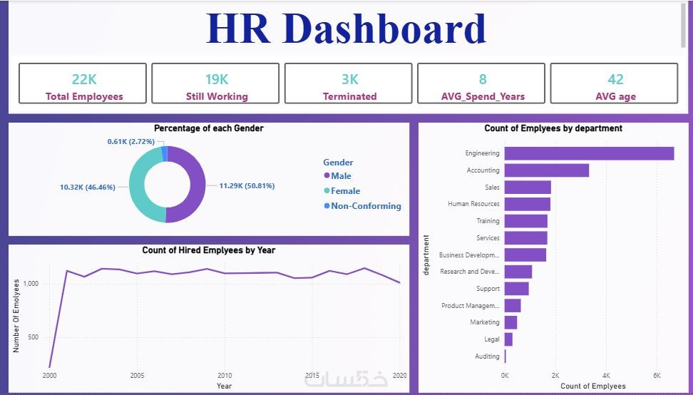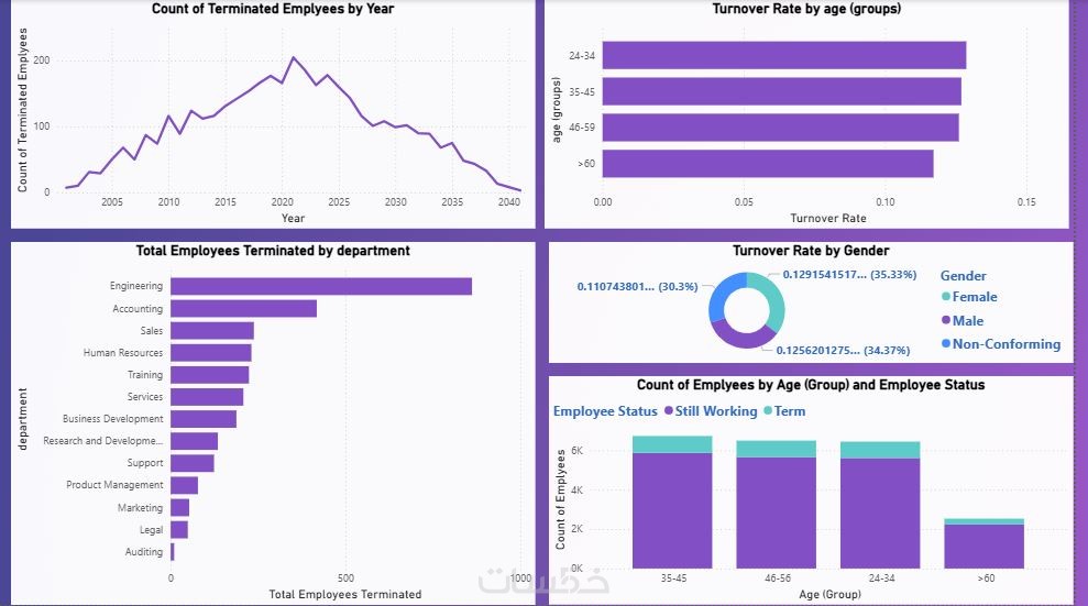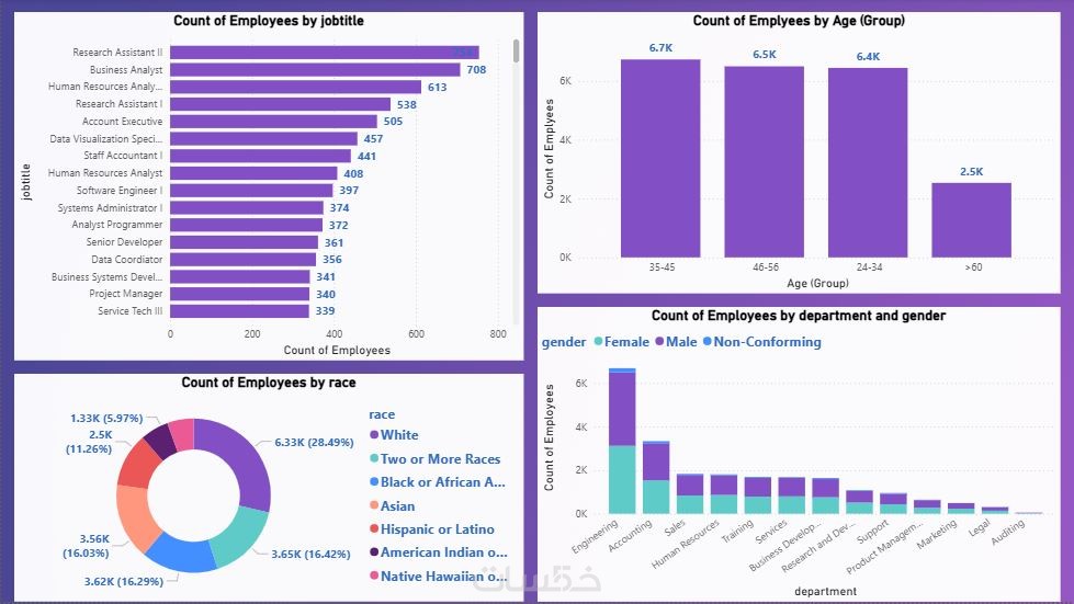 تحتوي على 3 إلى 4 رسوم بيانية (Visuals) أساسية (مثل: Bar Chart, Pie Chart, Card).