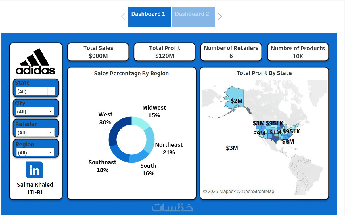 تصميم لوحات معلومات (Dashboards) تفاعلية مكونة من جداول و رسوم بيانية واضحة باسخدام Power BI اوTableau