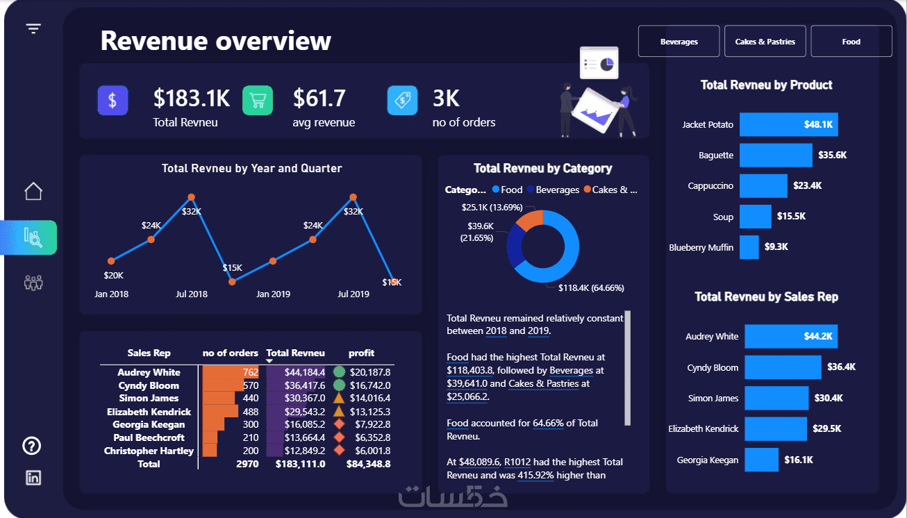 أنا بحوّل بياناتك للوحة معلومات تفاعلية تساعدك تتابع شغلِك بسهولة، وتشوف أهم مؤشرات الأداء (KPIs) من غير تعقيد، علشان تاخد قرارات أسرع وأدق.