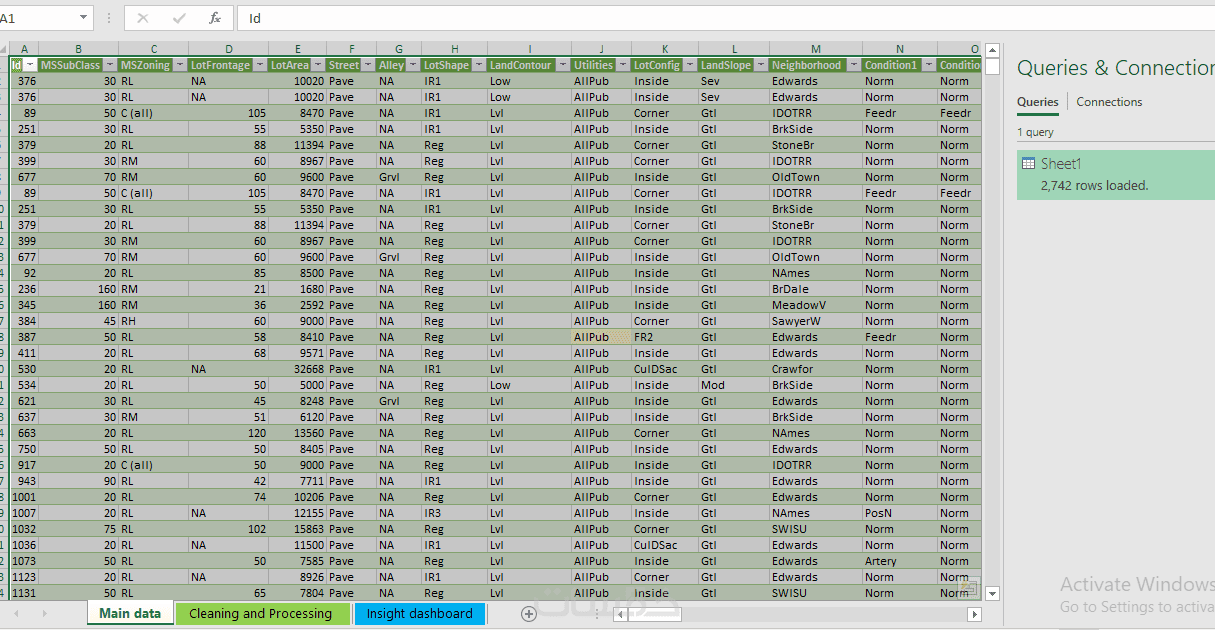 تنظيف بيانات 2000 صف (بحد اقصى 10 أعمدة) و تنظيمها لضمان الدقة.