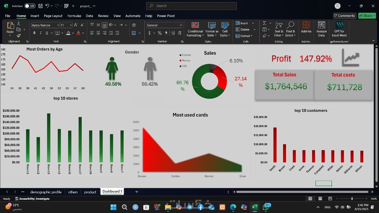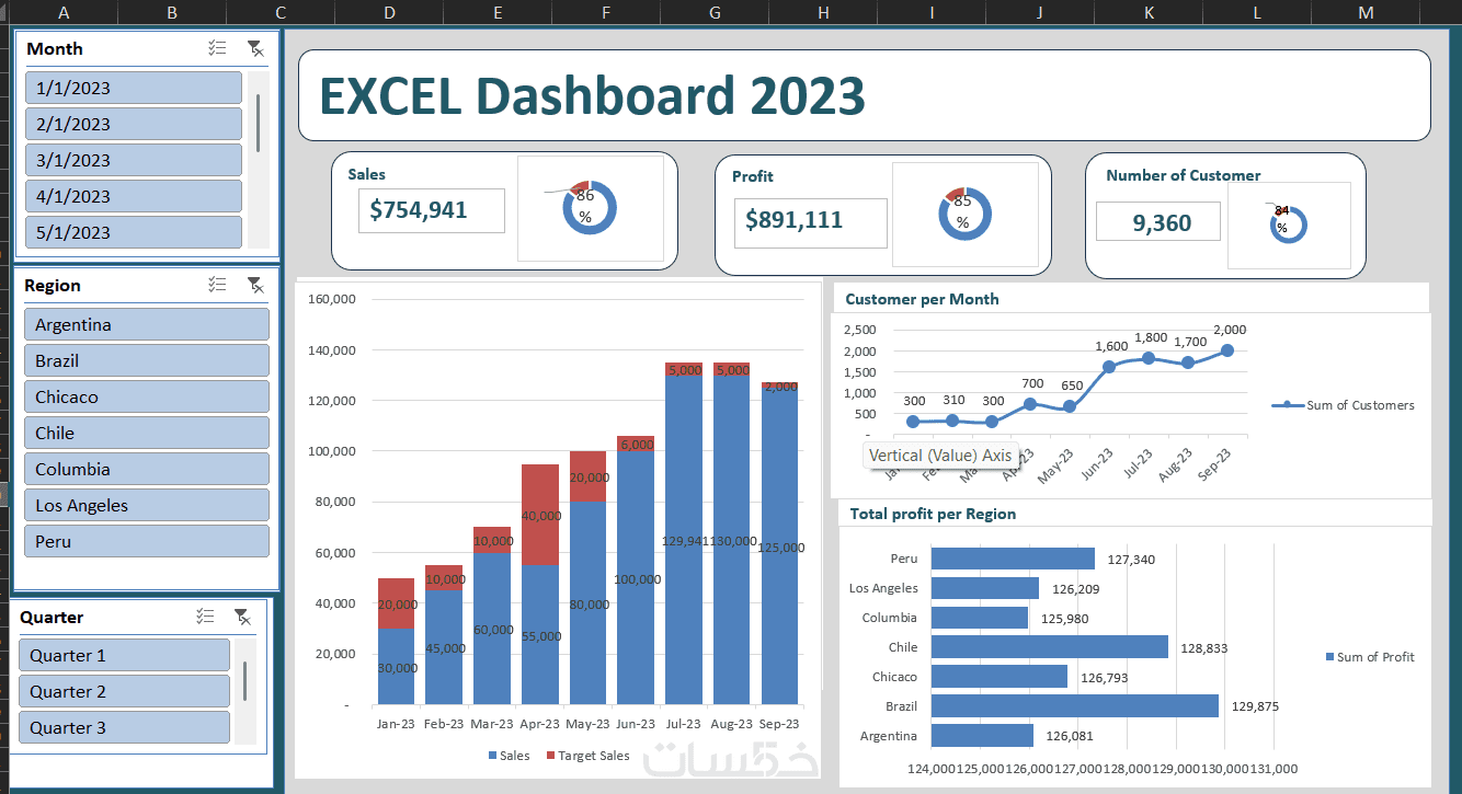 تصميم لوحة معلومات تفاعلية (Dashboard) بسيطة توضح الأداء بشكل بصري.