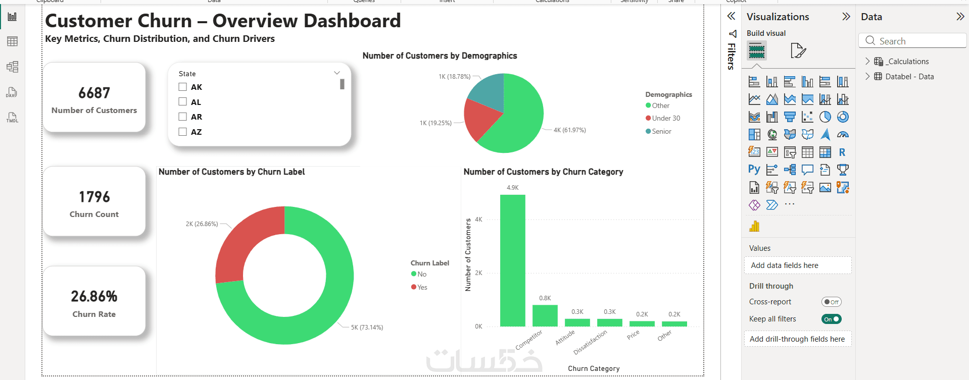 تصميم تقارير ولوحات معلومات تفاعلية توضح الأنماط الرئيسية في البيانات.