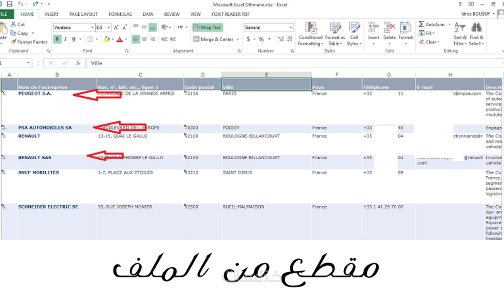 قمت بعد مجهود بجمع مجموعة من الشركات على ملف Excel يحتوي على 5000 شركة فرنسية و يتضمن الملف إسم الشركة وبعض المعلومات المتعلقة بها مثل (البريد الالكتروني و رقم الهاتف والعنوان ووصف مختصر للشركة…)