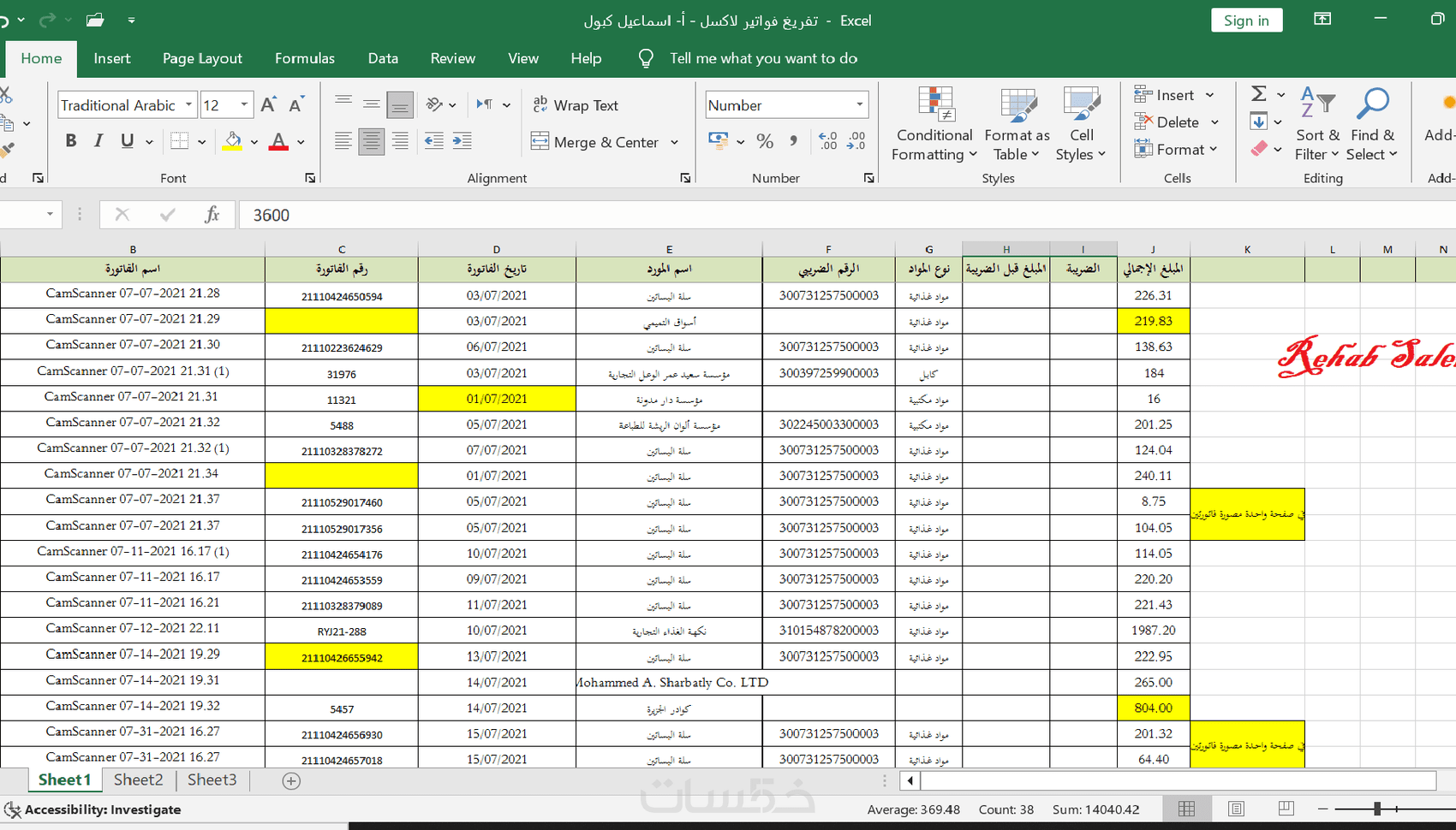 مقابل الخدمة ستحصل على إدخال بيانات (20 فاتورة) بما يعادل 200 خلية في الاكسل.