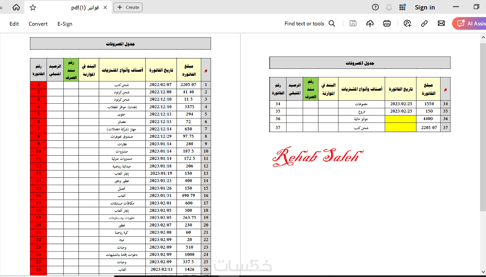 إدخال بيانات فواتير من ملف pdf (100 فاتورة) يُعادل 500 خلية