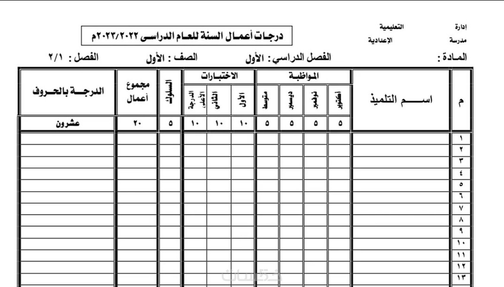 لا تفوت الفرصة! اطلب الآن واحصل على كشوفات الدرجات الخاصة بك بشكل احترافي وسهل الاستخدام. كل ما عليك هو إرسال البيانات وسأقوم بالباقي!