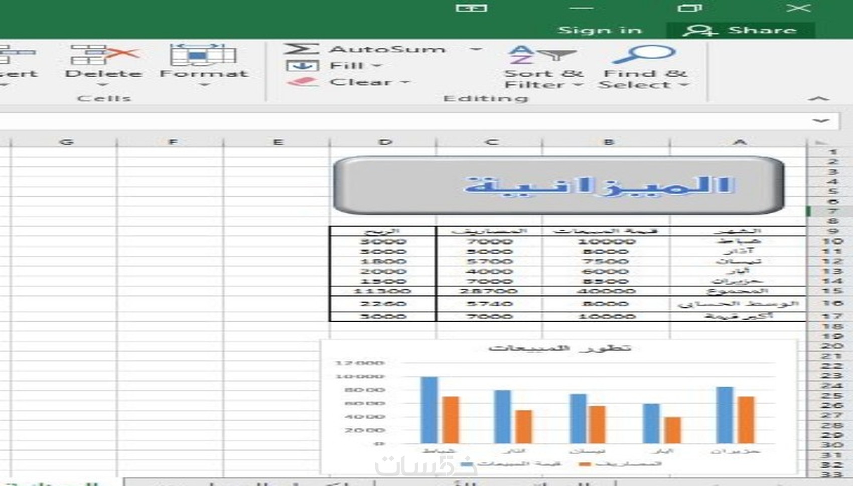 *كتابة البيانات في جداول اكسل مرتبة ويمكن تنسيق وعرض الخلايا بطريقة احترافية.