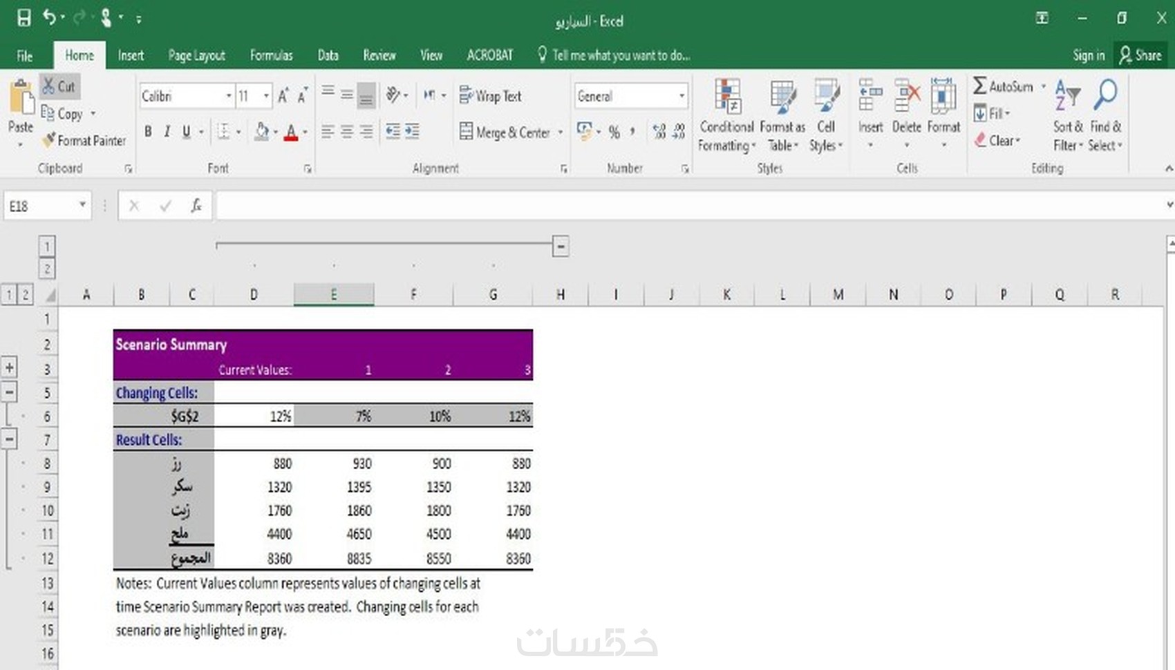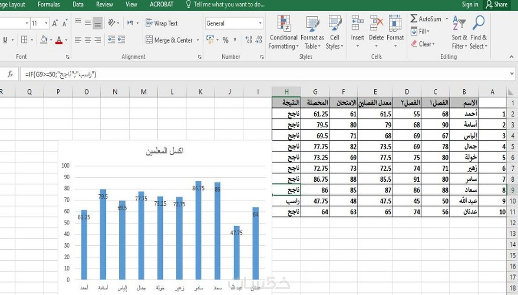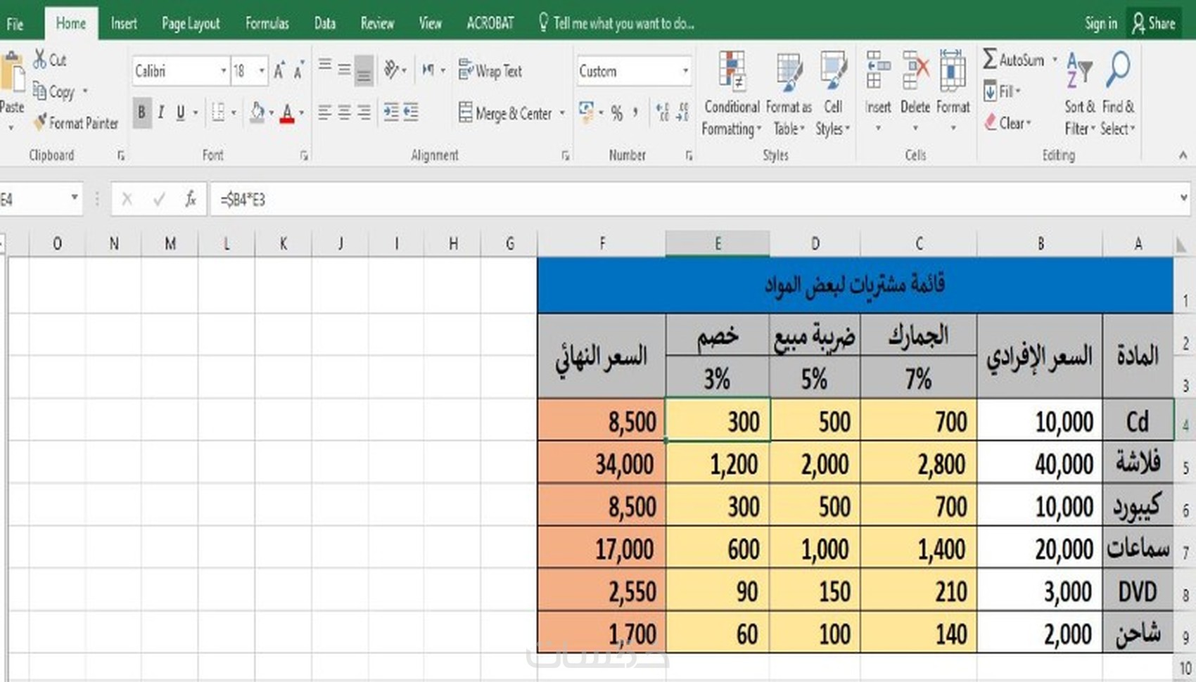 *إضافة المعادلات الرياضية اللازمة حتى يبقى الملف فعالاً في حال احتجت لاحقا لتعديل أي قيمة ضمن الجدول بنفسك دون الرجوع إلي.