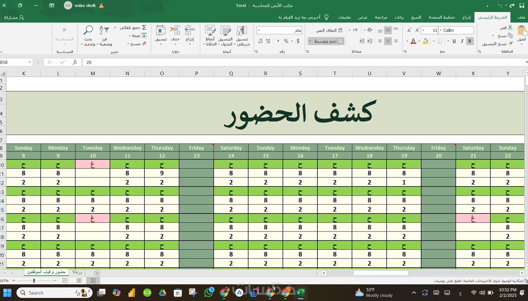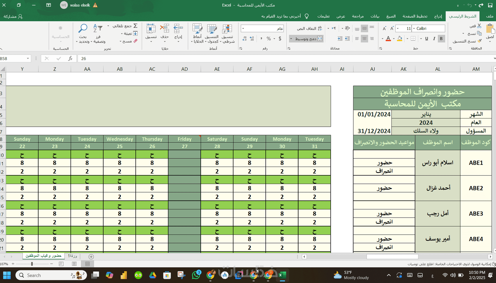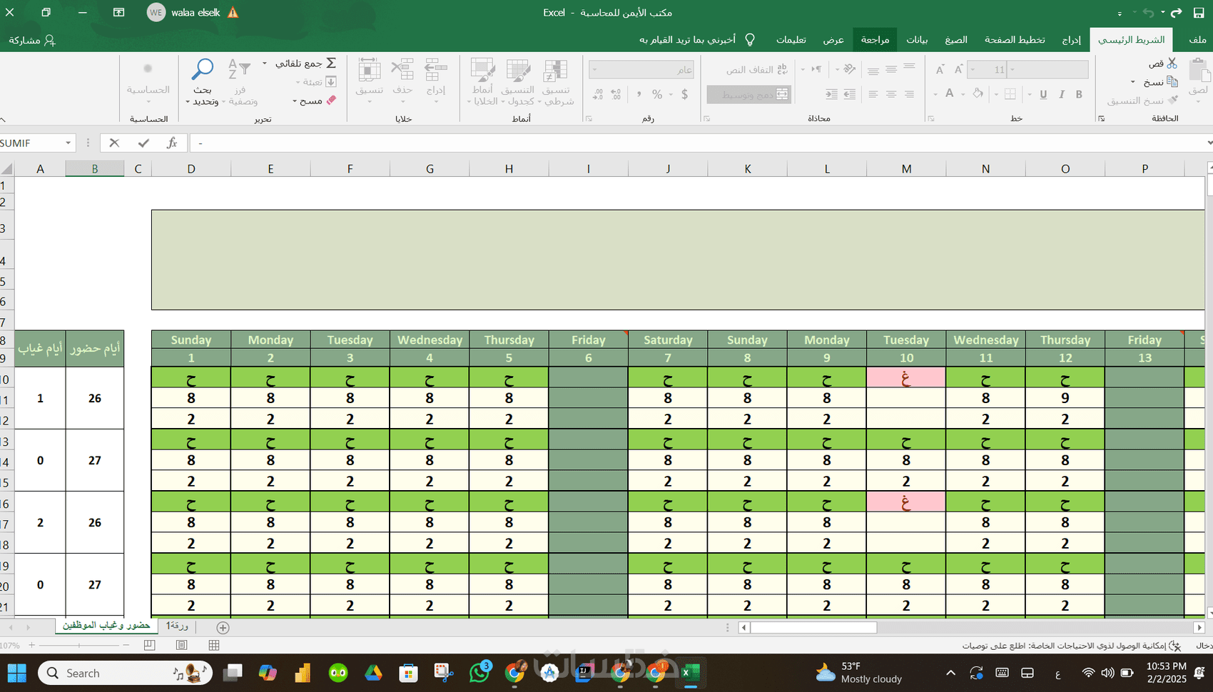 إضافة صيغ ودوال Excel (حسب الطلب).