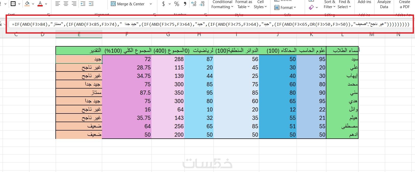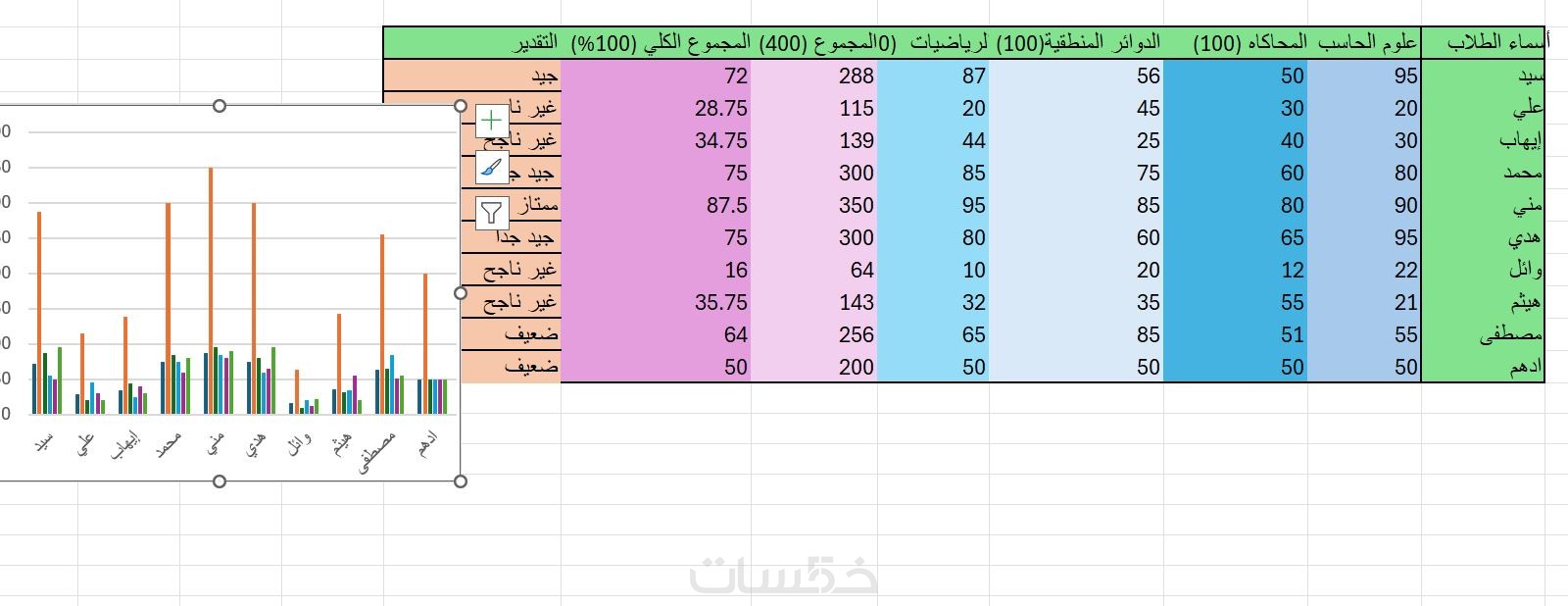 1-كتابة البيانات في جداول اكسل مرتبة ويمكن تنسيق وعرض الخلايا بطريقة احترافية.