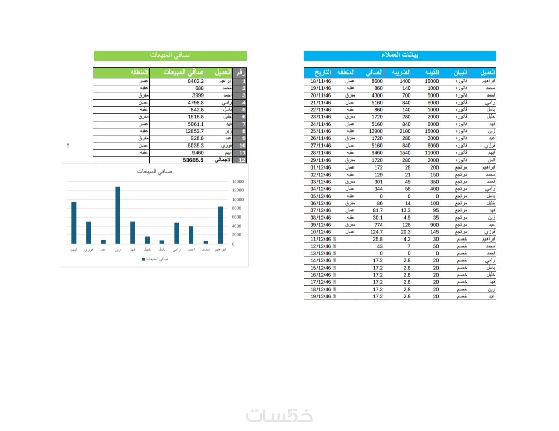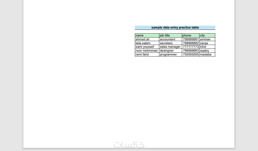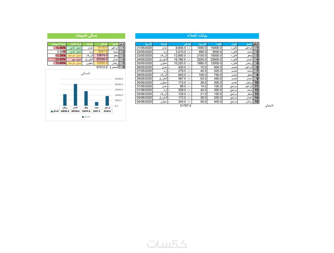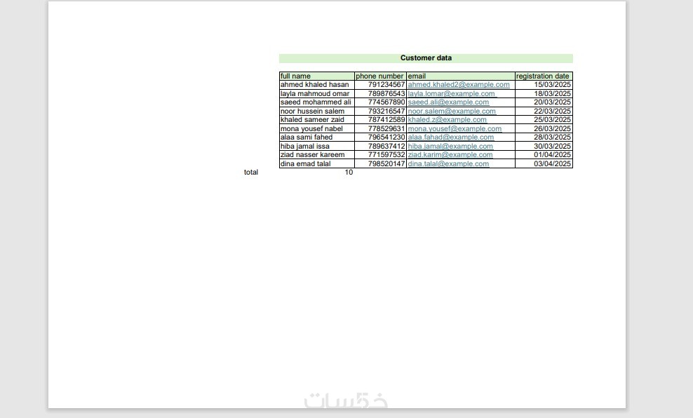 ملف Excel يحتوي على البيانات المطلوبة بشكل منظم