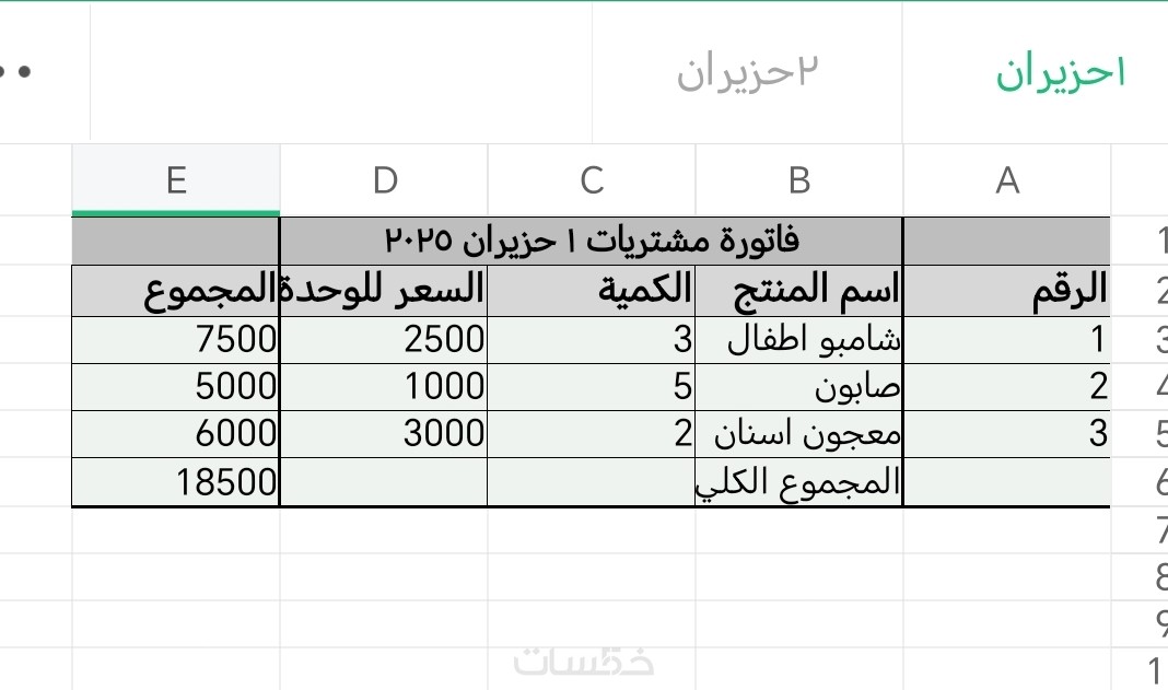 أضيف معادلات Excel لحساب المجاميع أو النسب تلقائيًا حسب نوع البيانات.