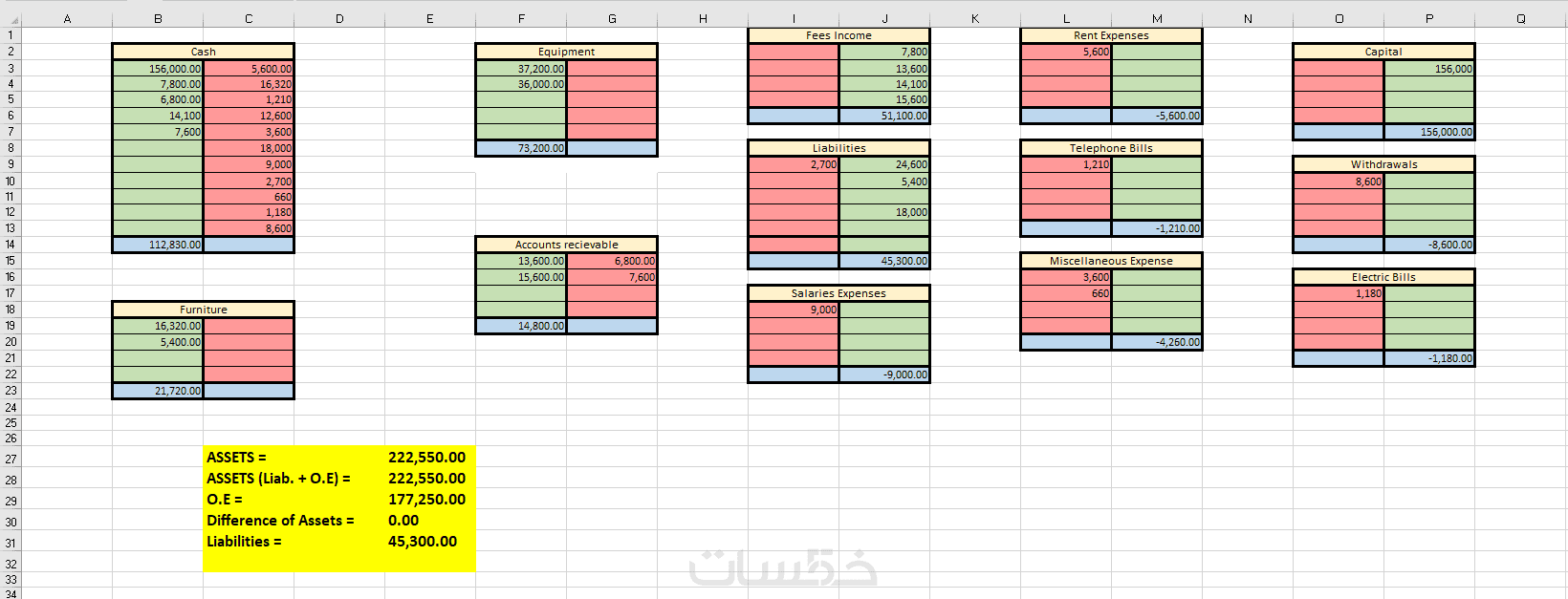 - تنسيق الجداول، المعادلات البسيطة