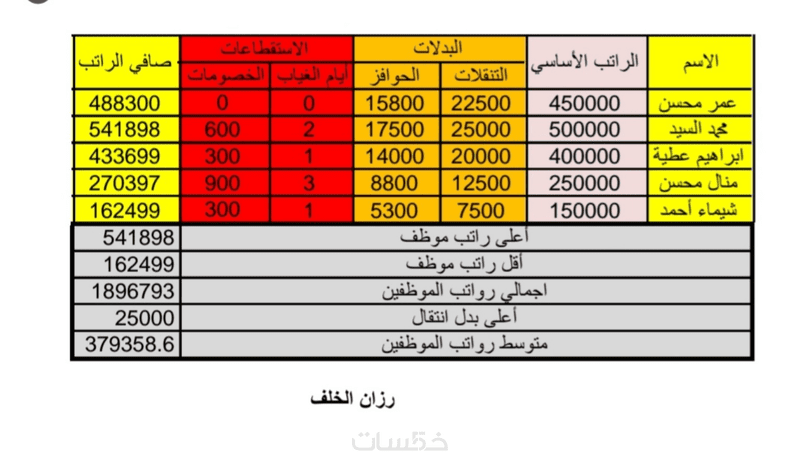 تنسيق احترافي (جداول، رواتب، تقارير، فواتير...)