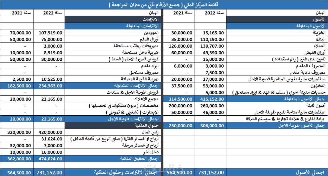 عمل القوائم المالية عن الفترة (شهري او سنوي) تشمل ( قائمة الدخل - ميزان المراجعة - الميزانية )