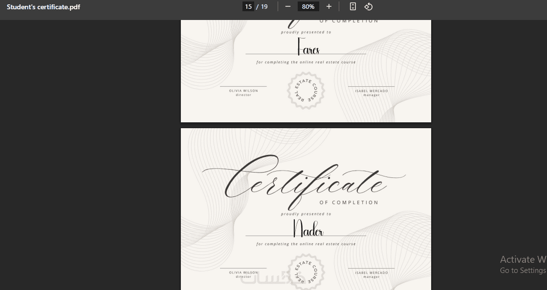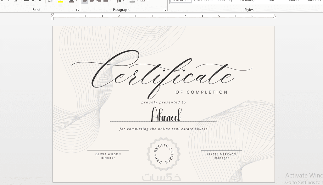 - إدراج الأسماء تلقائيًا في الشهادة.
