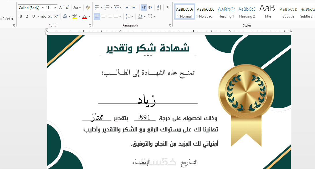 - تنسيق النص (الحجم – اللون – الخط) حسب طلبك.
