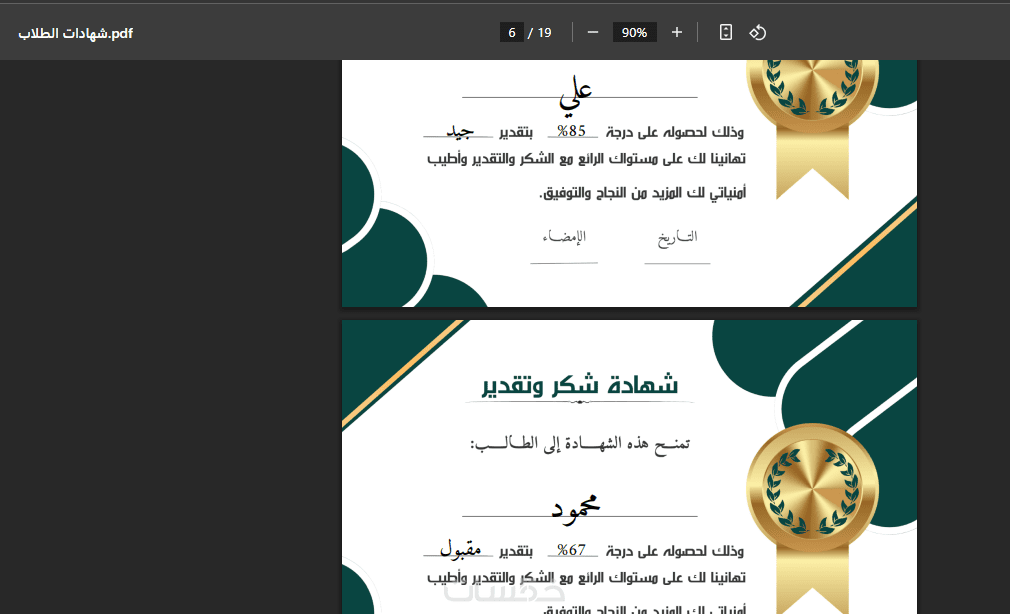 - إخراج الشهادات بشكل منفصل لكل اسم.