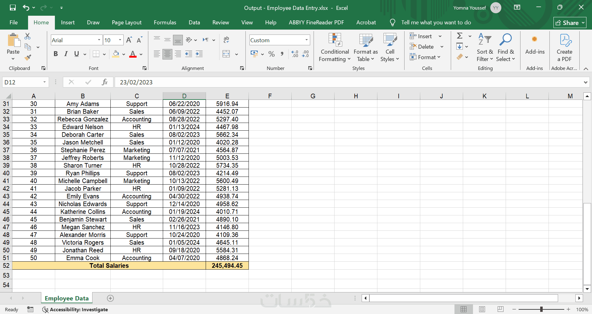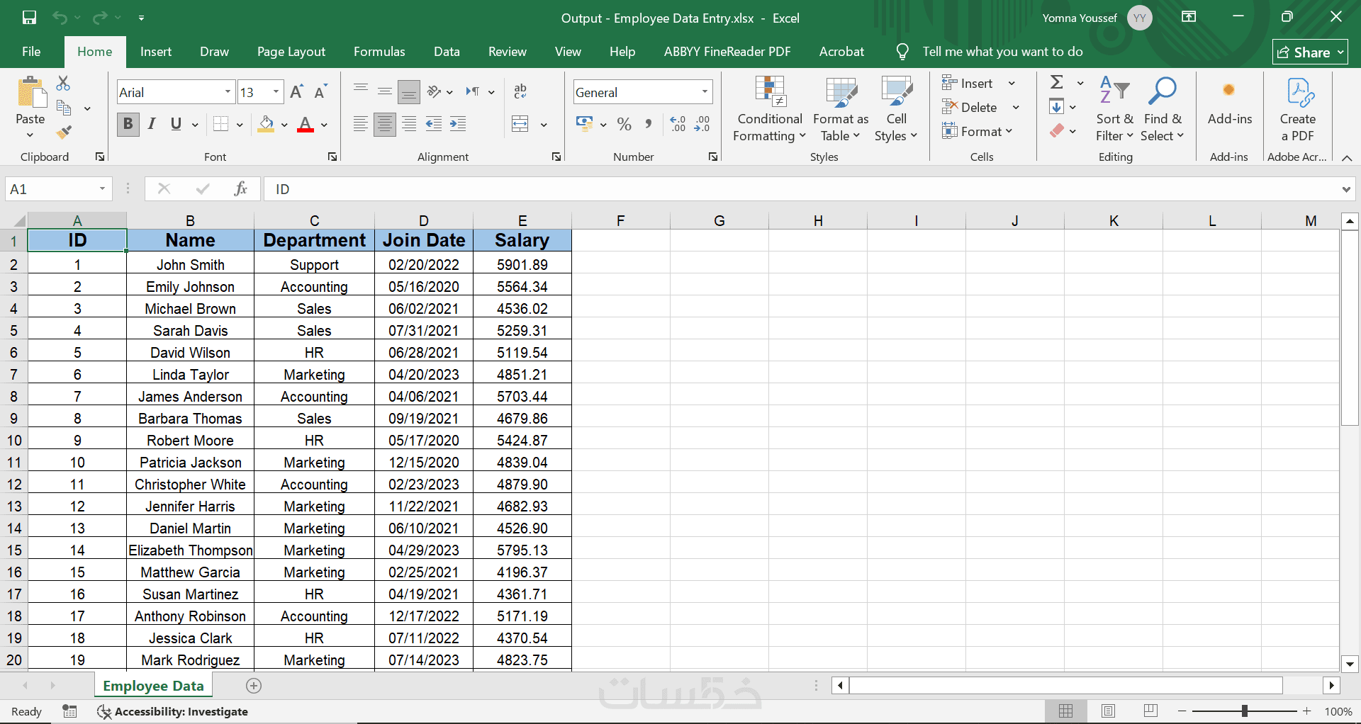 - تنسيق الأعمدة والعناوين لتكون واضحة وسهلة الاستخدام.